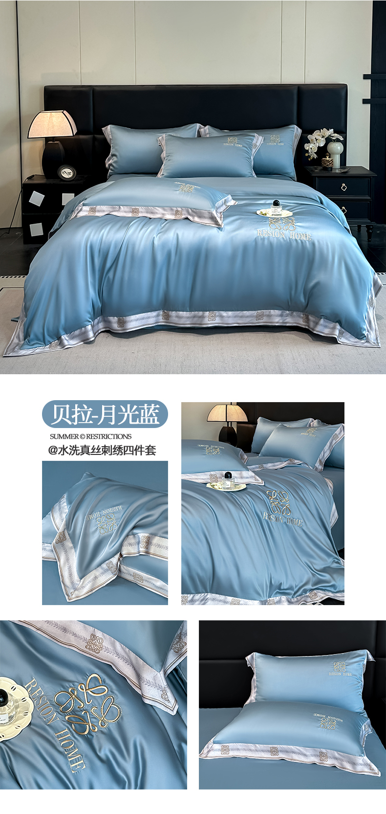 当前位置: 91家纺网 > 商品网购 > 床品套件 > 四件套 > 其它四件套 > 露梦家纺 2026新款A类水洗真丝轻奢刺绣拼接宽边四件套--贝拉系列 贝拉-薄雾灰
