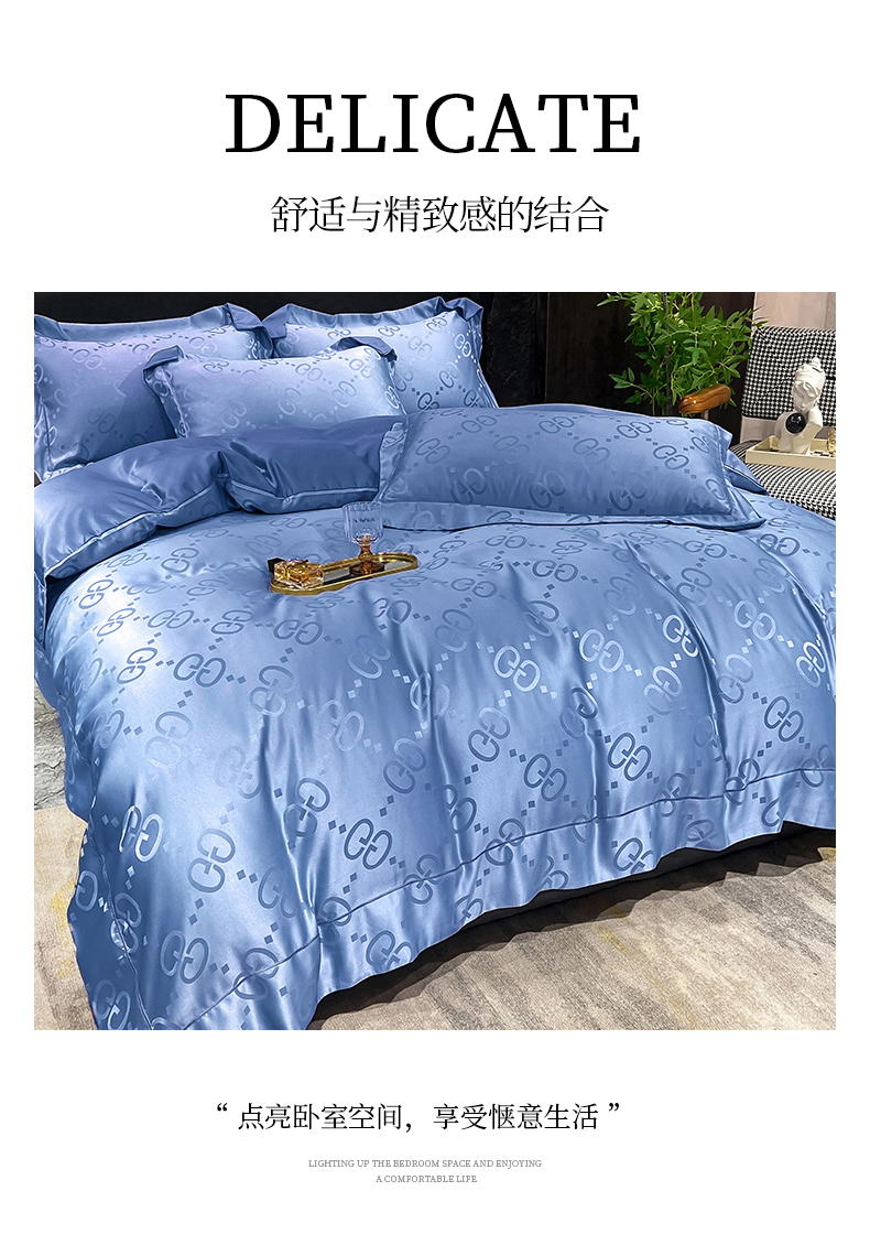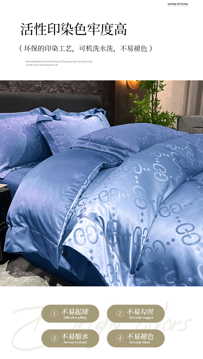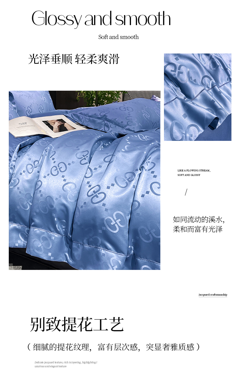 (总) 新25 经年2025年 水洗真丝冰丝天丝提花四件套直播爆款 格林系列 ,格林-宝蓝,格林-粉玉,格林-浅灰,格林-天蓝,格林-香槟