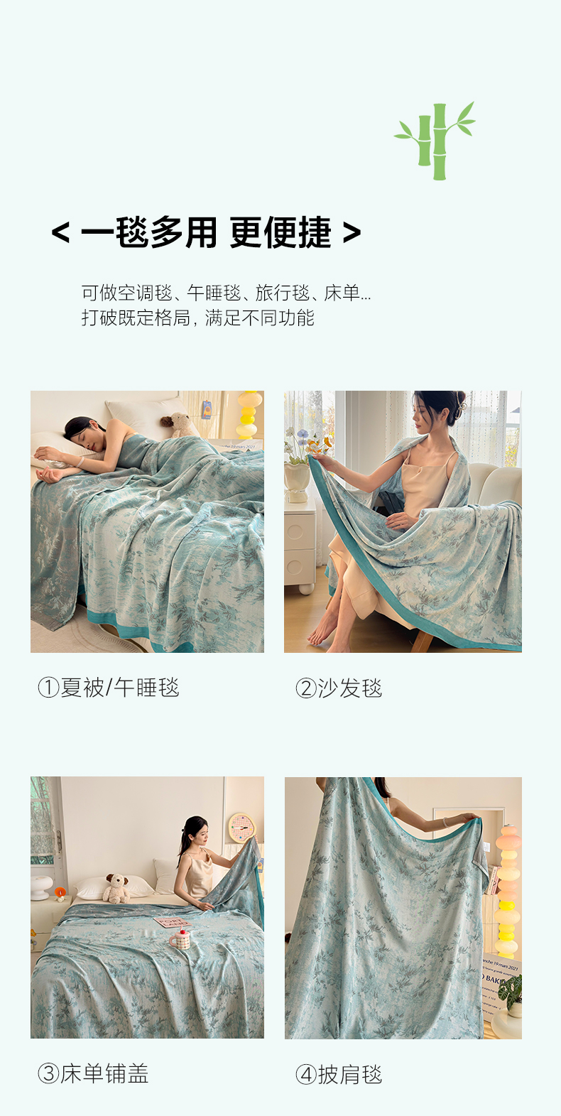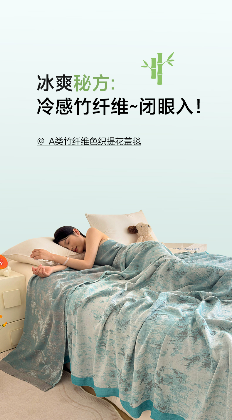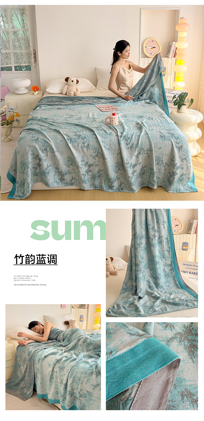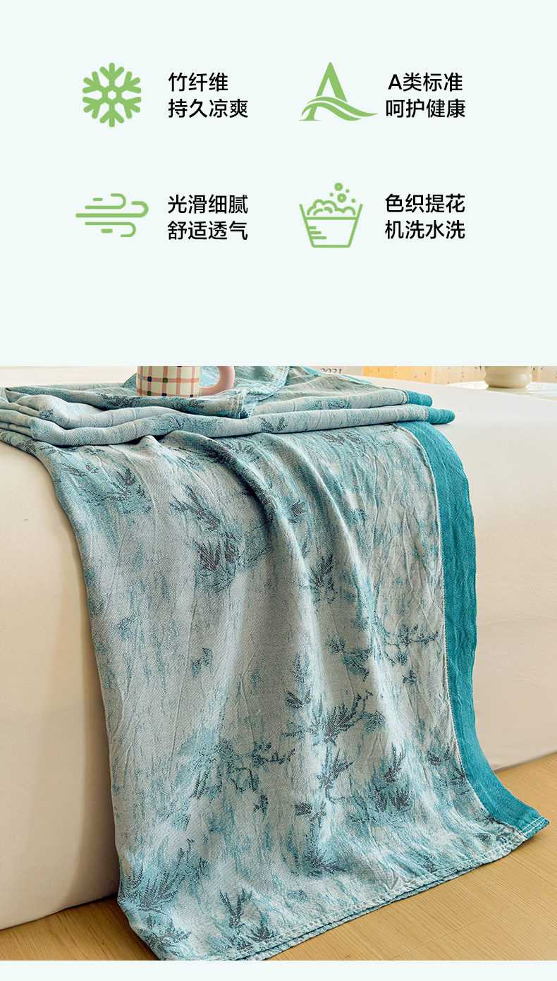 商品名称:棠薇家纺 2026新款竹纤维毯子冷感毯毛巾被柔滑多功能夏凉毯盖毯纱发毯办公室午休毯 竹韵蓝调