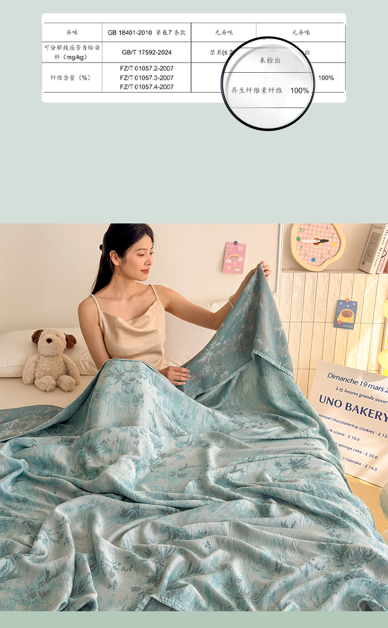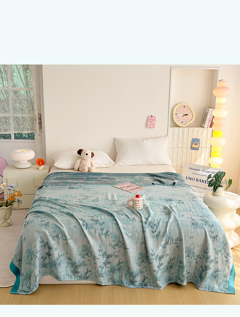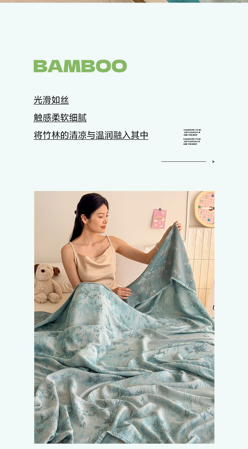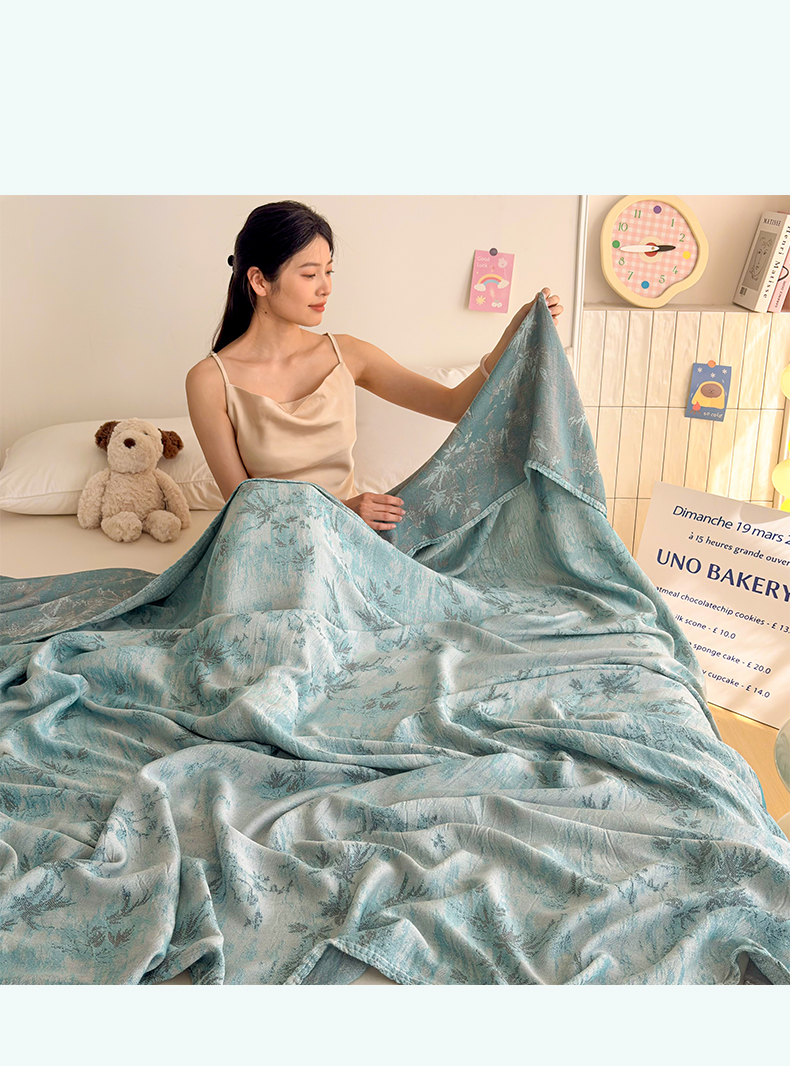 商品名称:棠薇家纺 2026新款竹纤维毯子冷感毯毛巾被柔滑多功能夏凉毯盖毯纱发毯办公室午休毯 竹韵蓝调