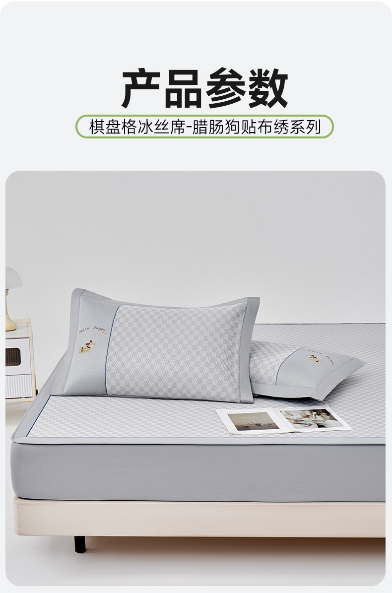 (总)小牛席业 2026新款棋盘格冰丝席(腊肠狗贴布绣)凉席三件套-床席款,腊肠狗贴布绣-灰色,腊肠狗贴布绣-蓝色,腊肠狗贴布绣-粉色,腊肠狗贴布绣-咖色