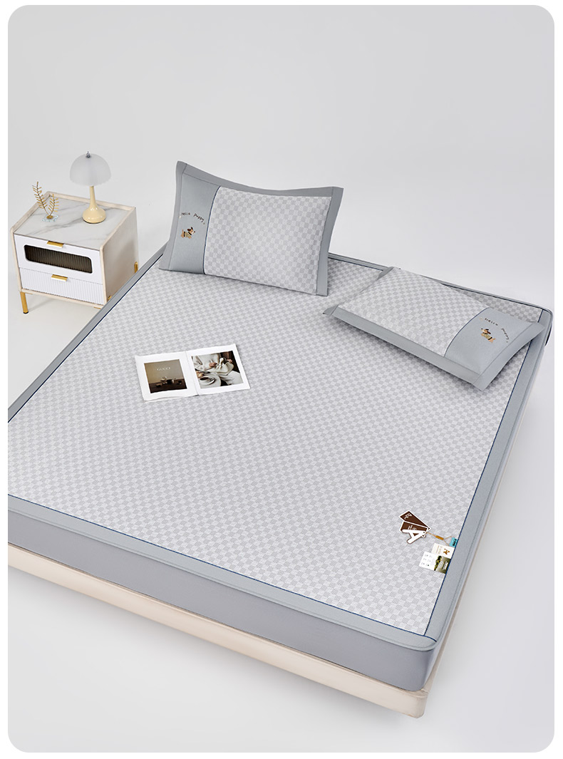 (总)小牛席业 2026新款胖达凉感提花冰丝席席子凉席-床笠款,粉色,灰色,蓝色,香槟