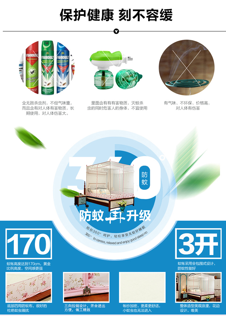 (总)安金蚊帐 坐床式三开门蚊帐 那时花开