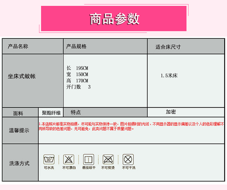 商品名称:(总)安金蚊帐 坐床式三开门蚊帐 那时花开