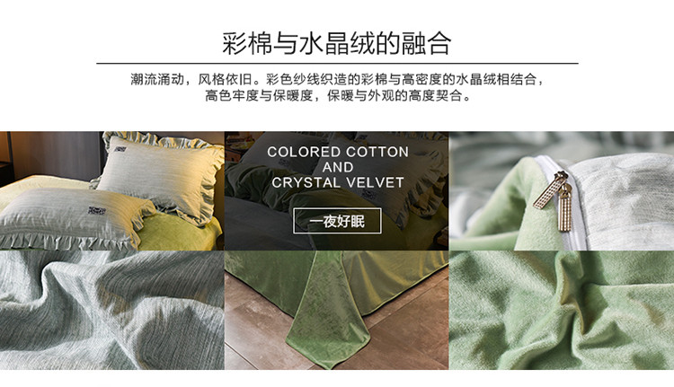 商品名称:芃成家纺 韩版水洗彩棉水晶绒 回首