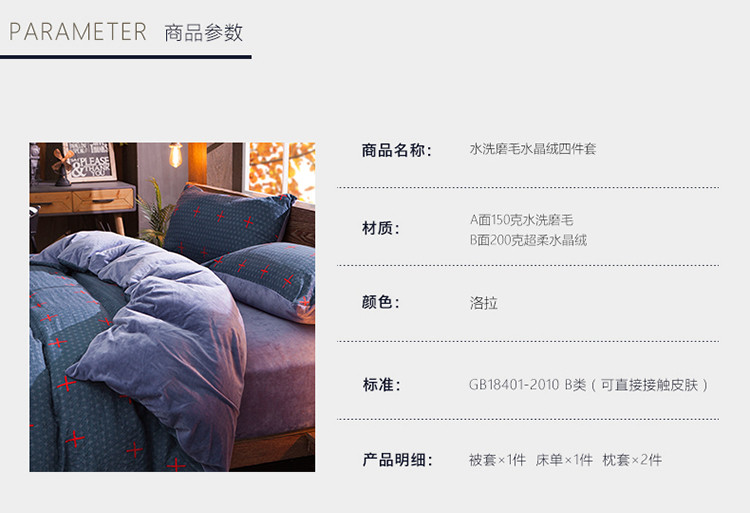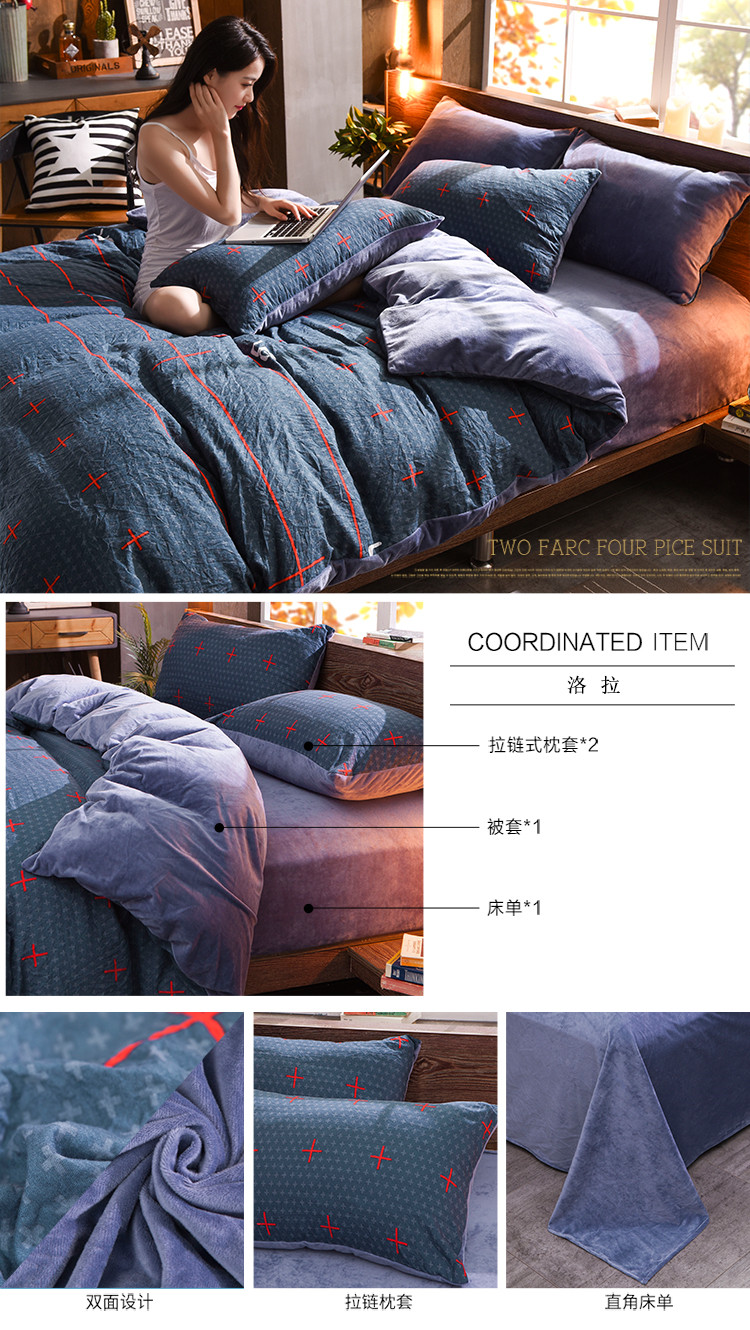 商品名称:芃成家纺 水洗磨毛加绒四件套 洛拉