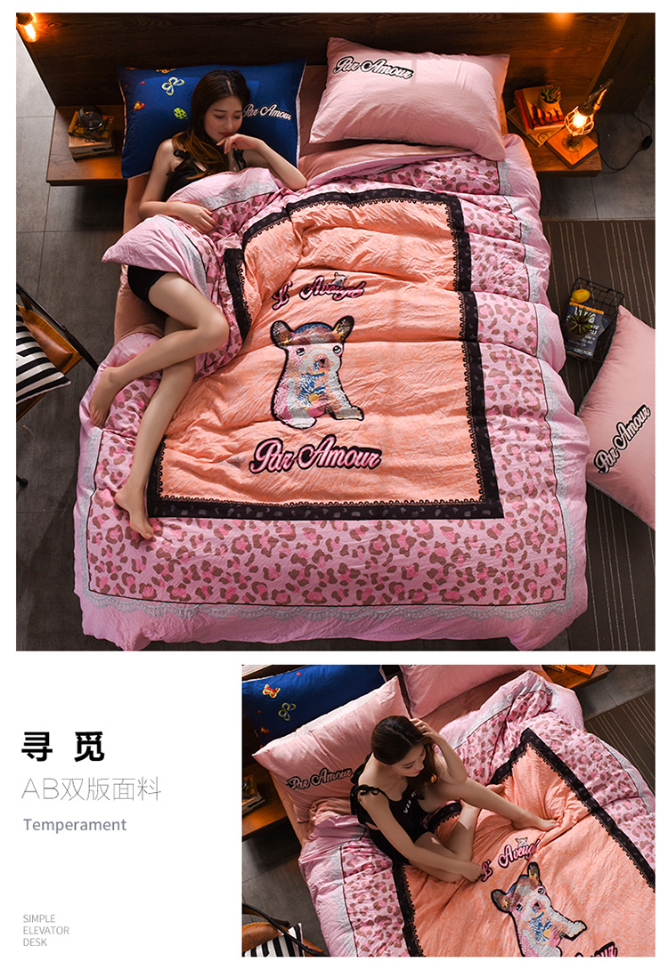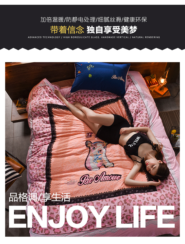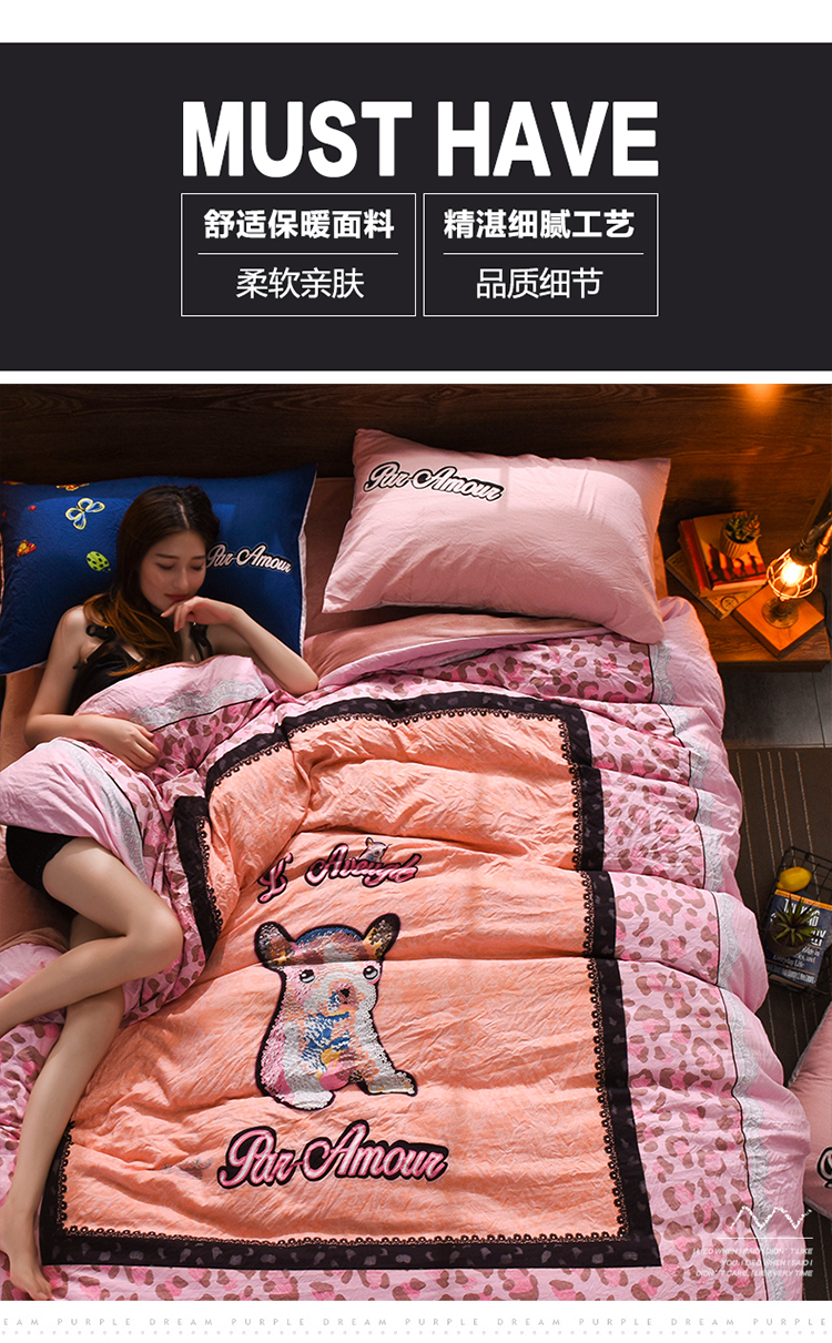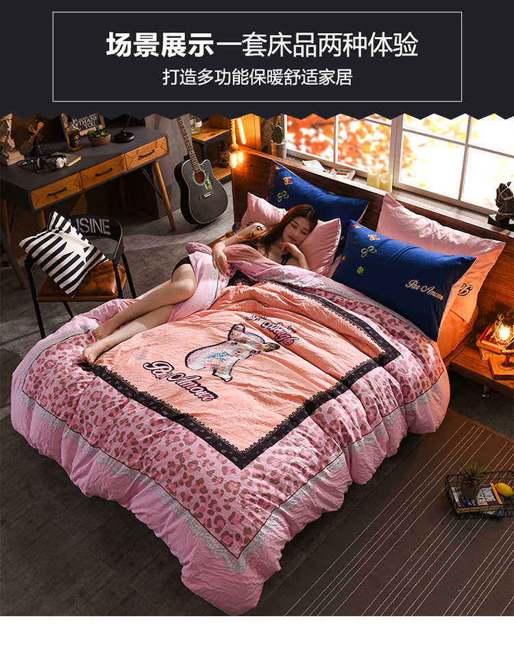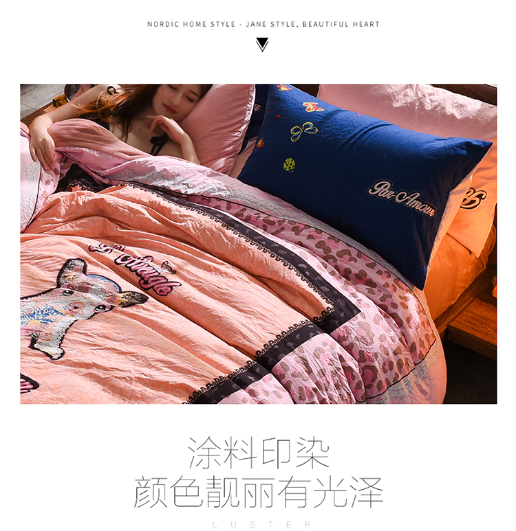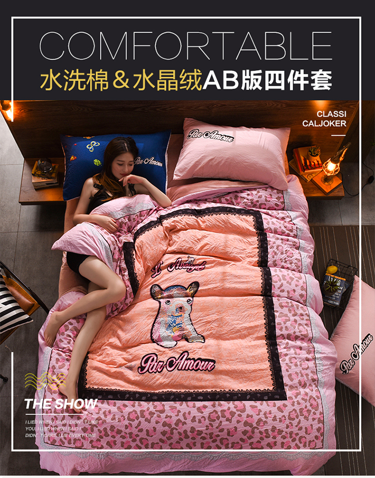 芃成家纺 磨毛水洗棉平网印花拼水晶绒四件套寻觅