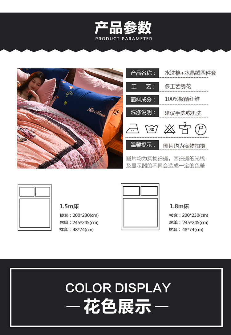 商品名称:芃成家纺 磨毛水洗棉平网印花拼水晶绒四件套寻觅