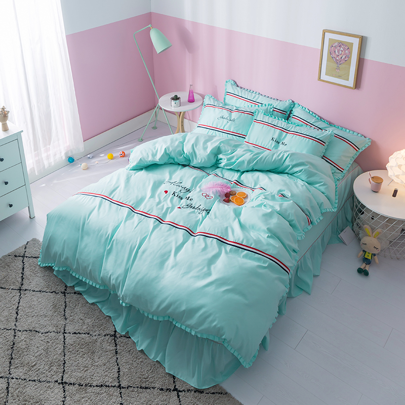 2018欧冠家纺INS典藏版爆款四件套 床裙款INS-果绿