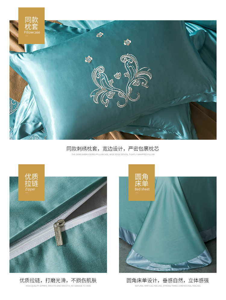 千禧 2024新款贡缎磨毛婚庆绣花多件套 盛世华庭(彩色绣),盛世华庭(彩色绣)