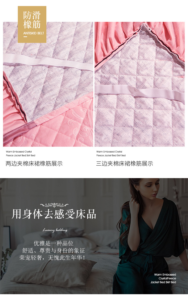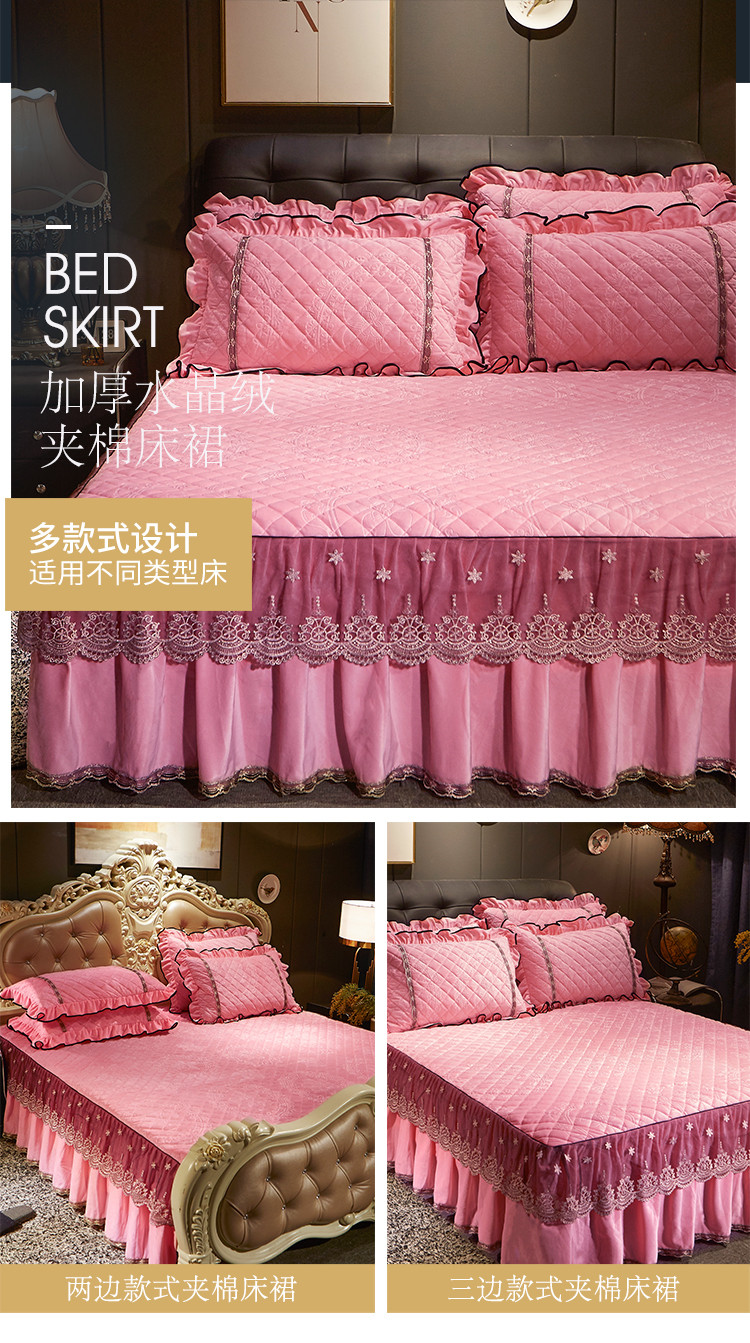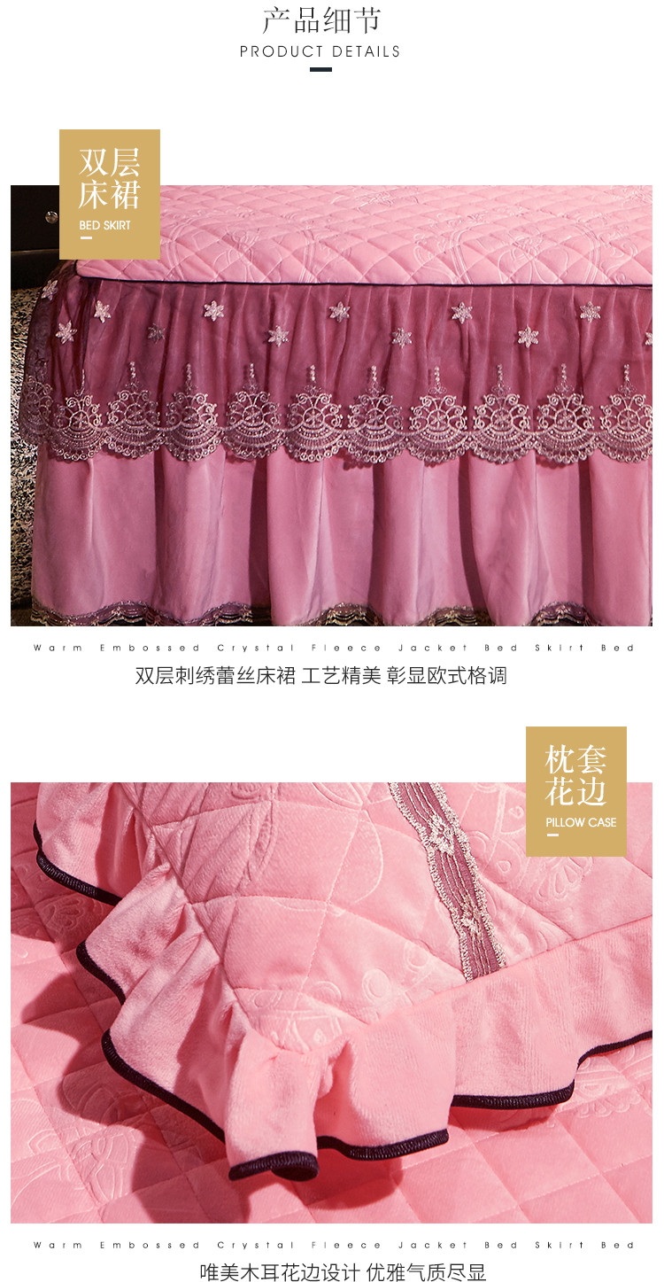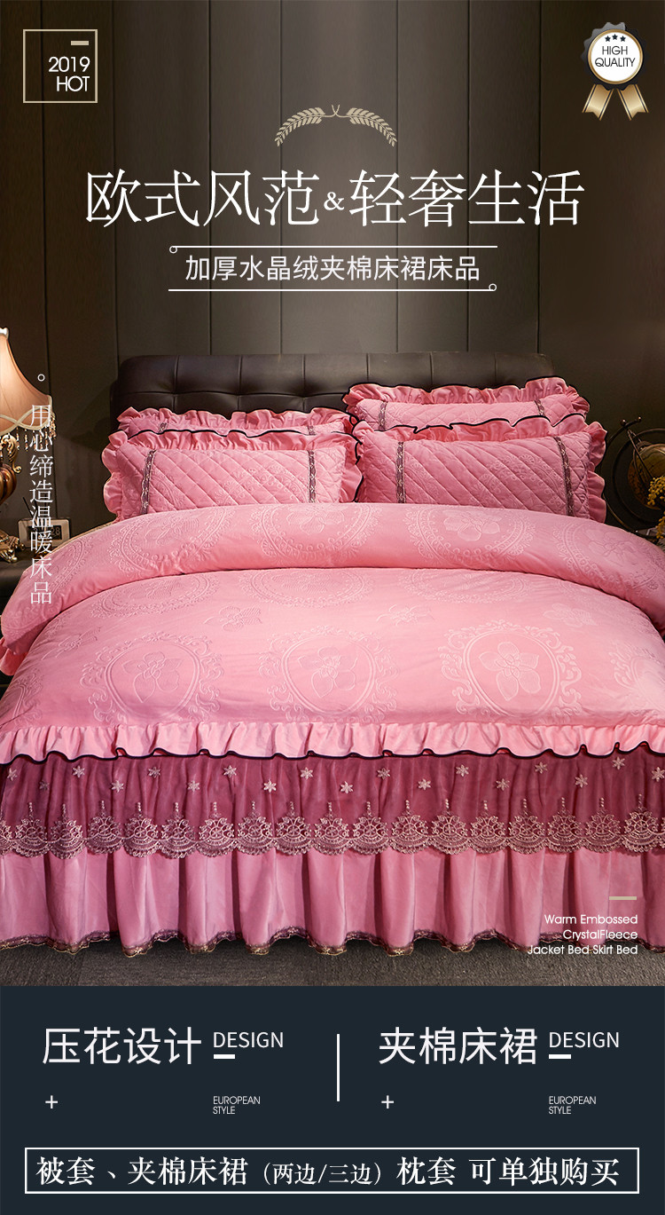 商品名称:宜凡家纺 2019新款水晶绒夹棉床裙四件套 花之都-粉玉