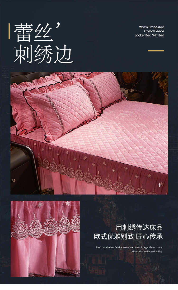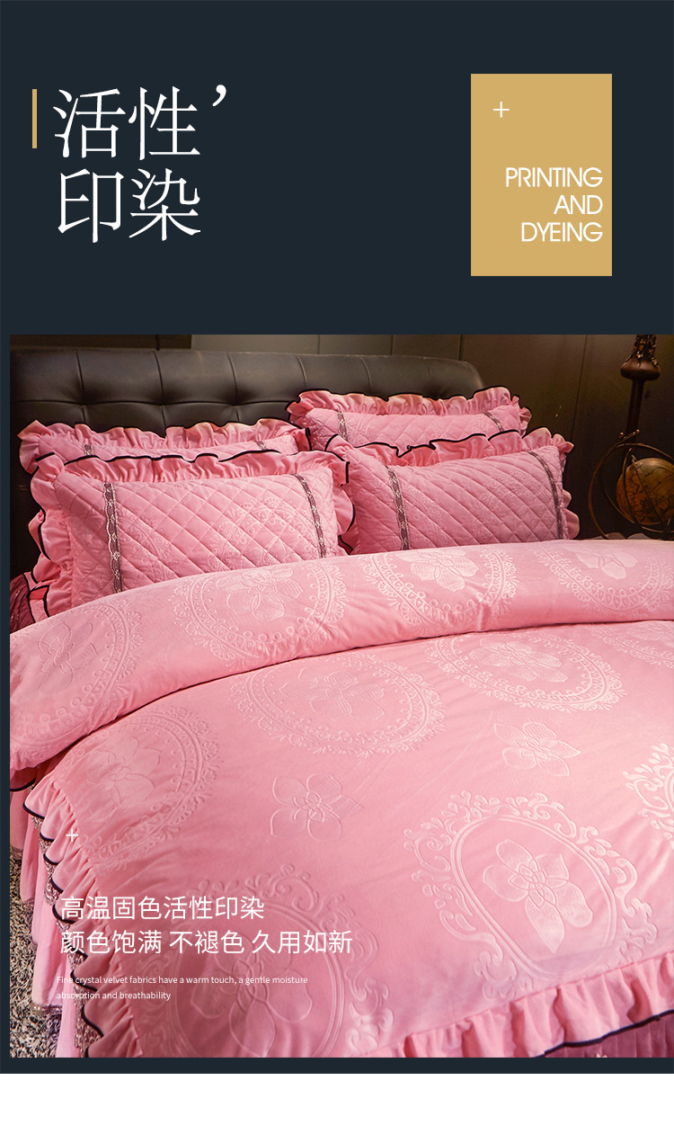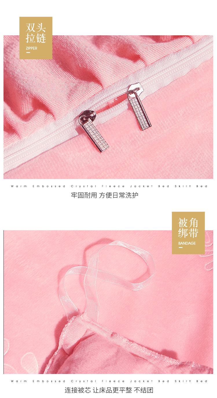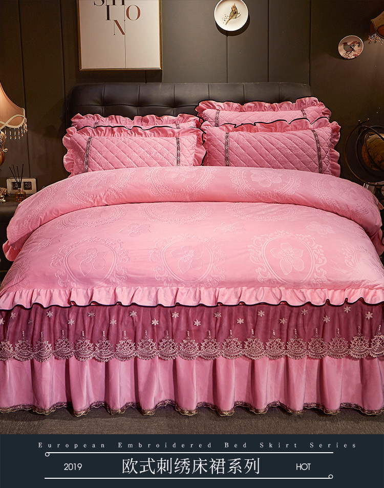 宜凡家纺 2019新款水晶绒夹棉床裙四件套 花之都-粉玉