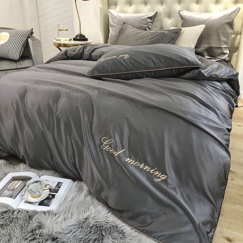 优悦家纺 2020新款早安水洗真丝四件套 高雅灰