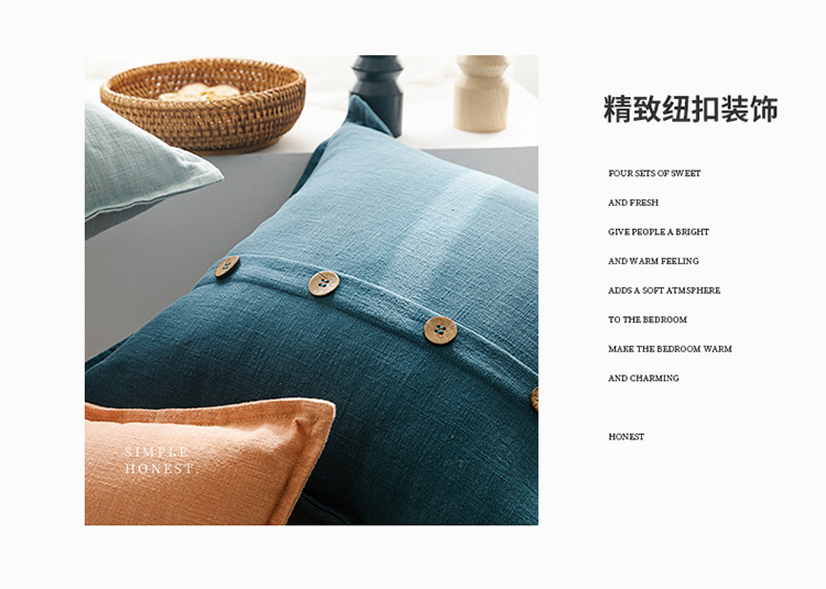(总)美茉家居日韩简约棉麻素色抱枕椰扣装饰纯色靠垫含芯可拆洗,湖蓝,麻本,肉粉,苔绿,雾蓝
