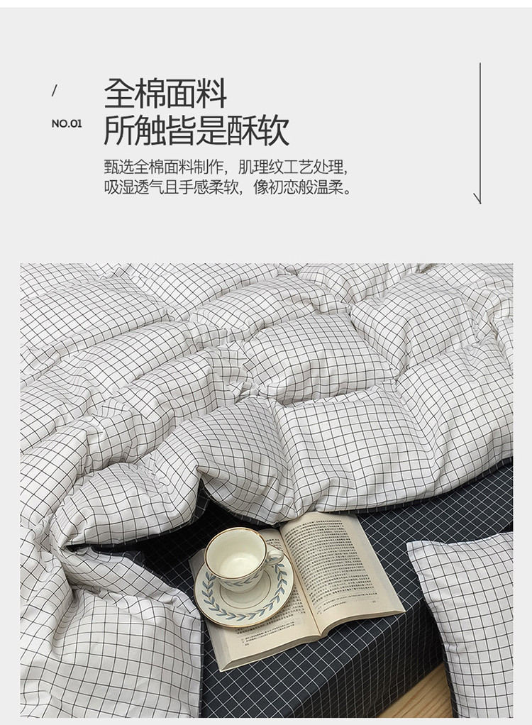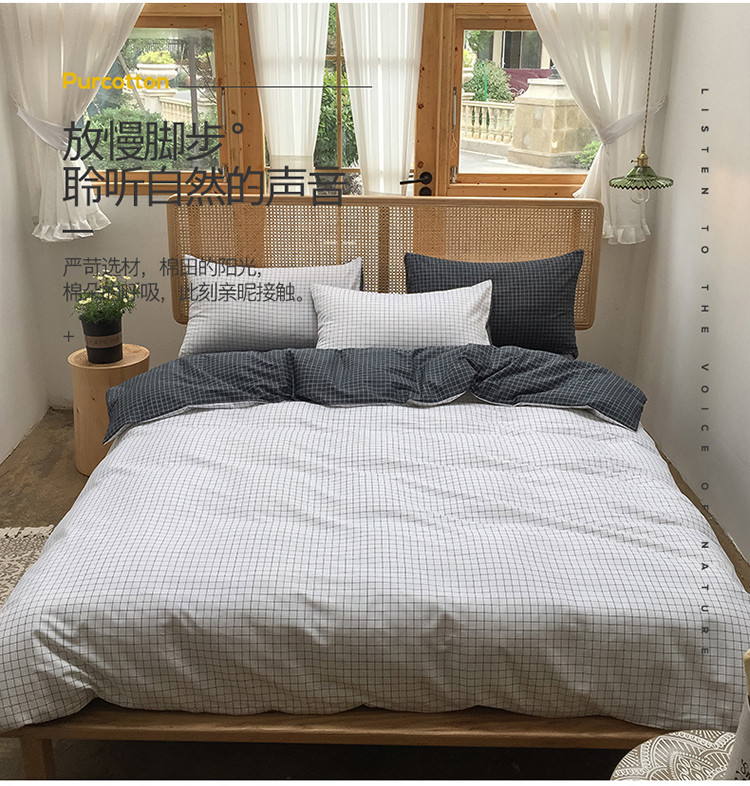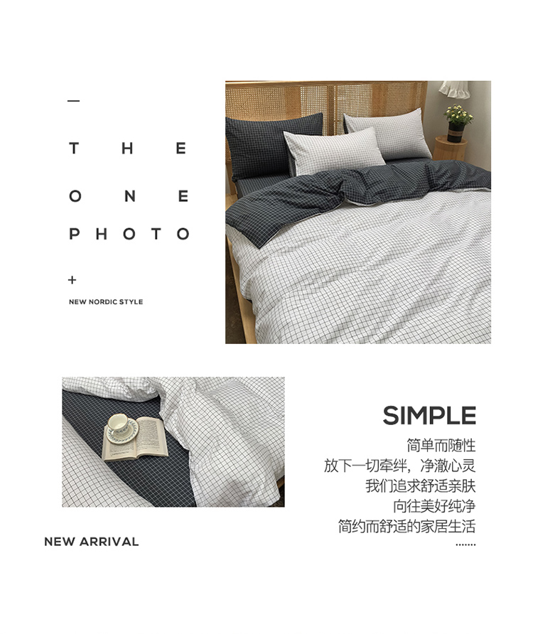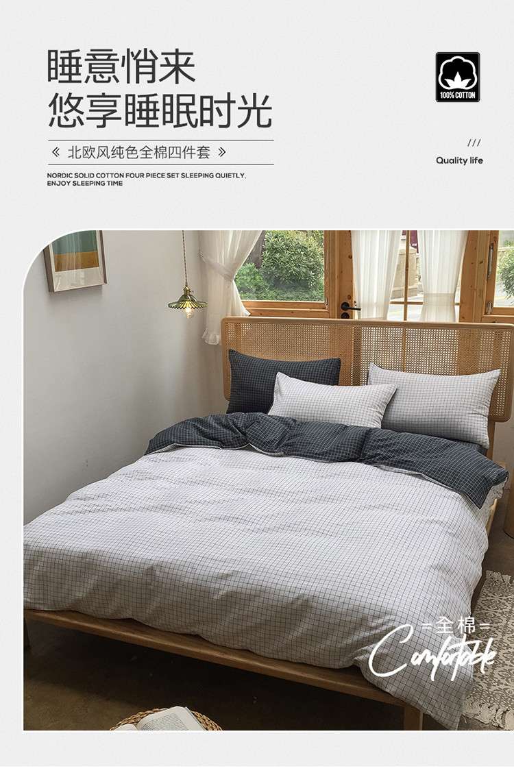 商品名称:雲归梦 2020新款北欧风纯色全棉四件套 自由格-白