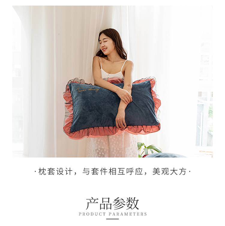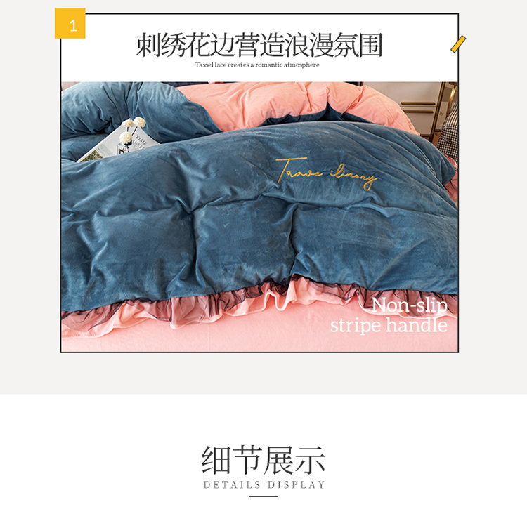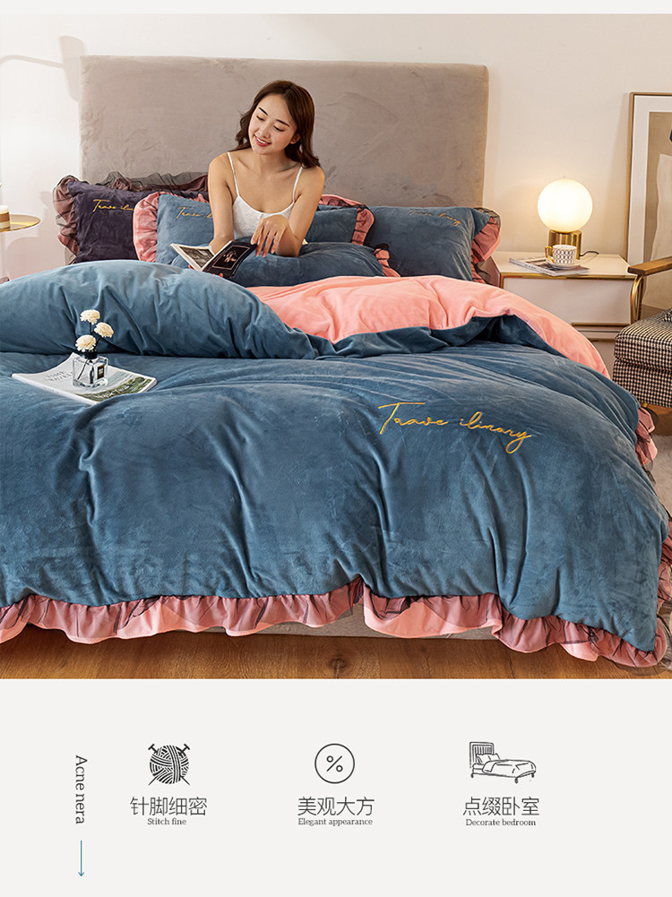 商品名称:蓝巢 2020新款水晶绒蕾丝边四件套 绒-宾利蓝浅粉
