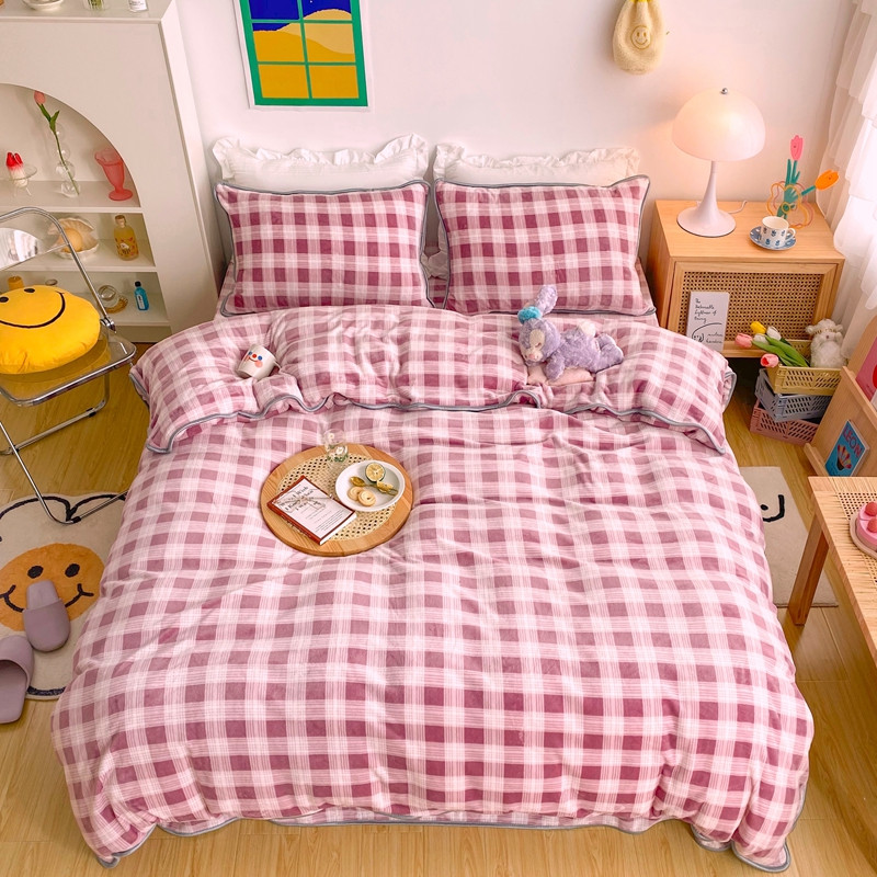 (总)顾里家纺 2024新款格子蝴蝶结毛巾绣牛奶绒四件套,粉格蝴蝶结,粉蓝蝴蝶结,黄格蝴蝶结,蓝格蝴蝶结,绿格蝴蝶结