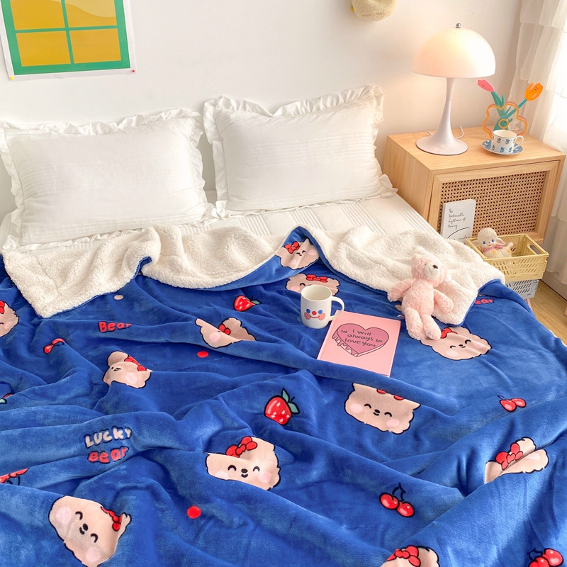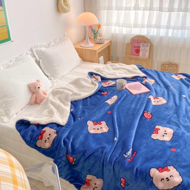 商品名称:顾里2020新款ins网红少女心温暖牌羊羔绒毯 草莓小熊