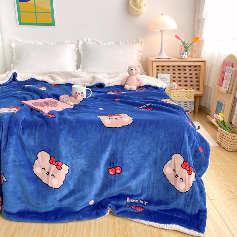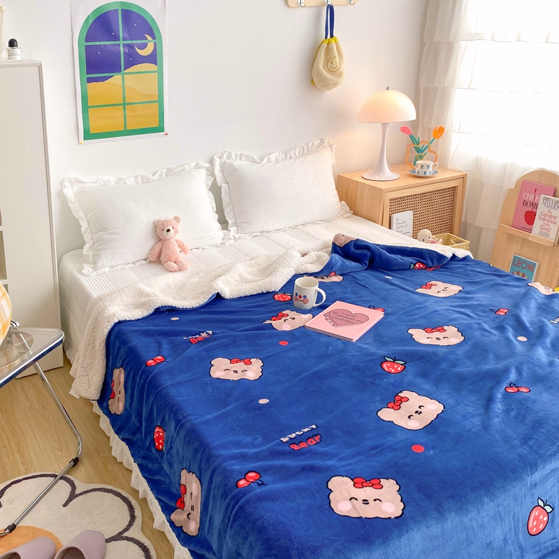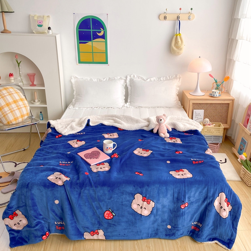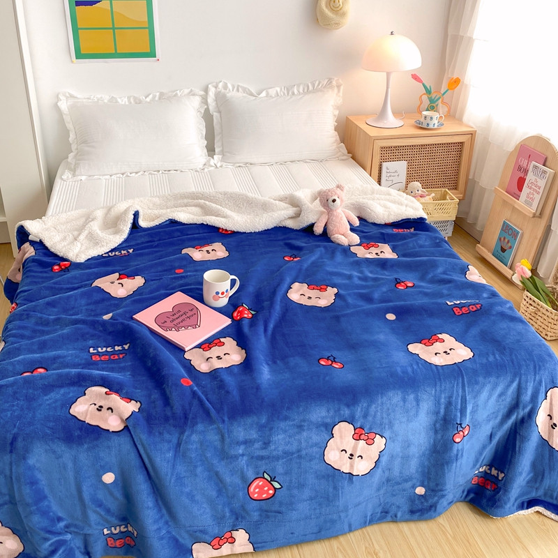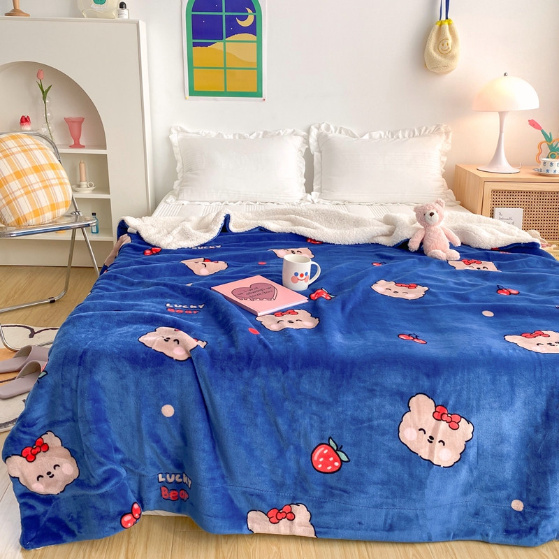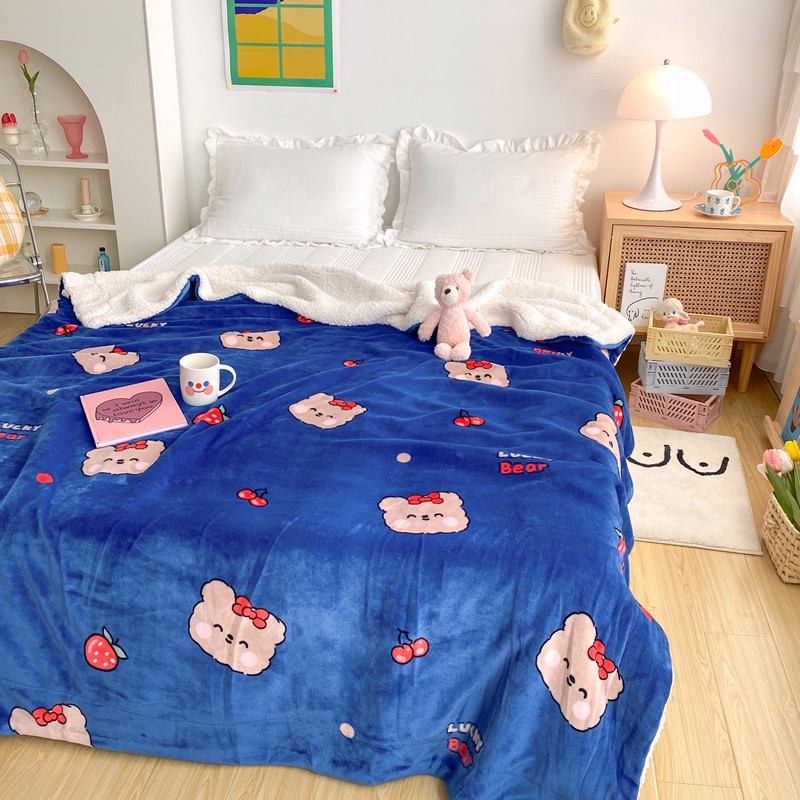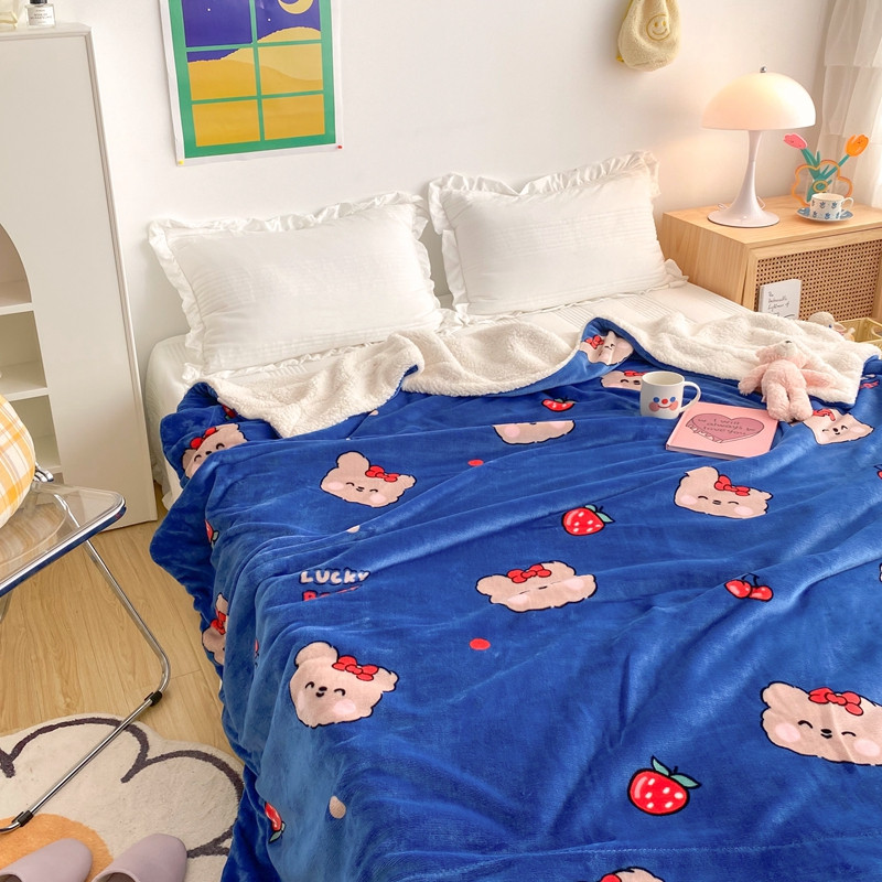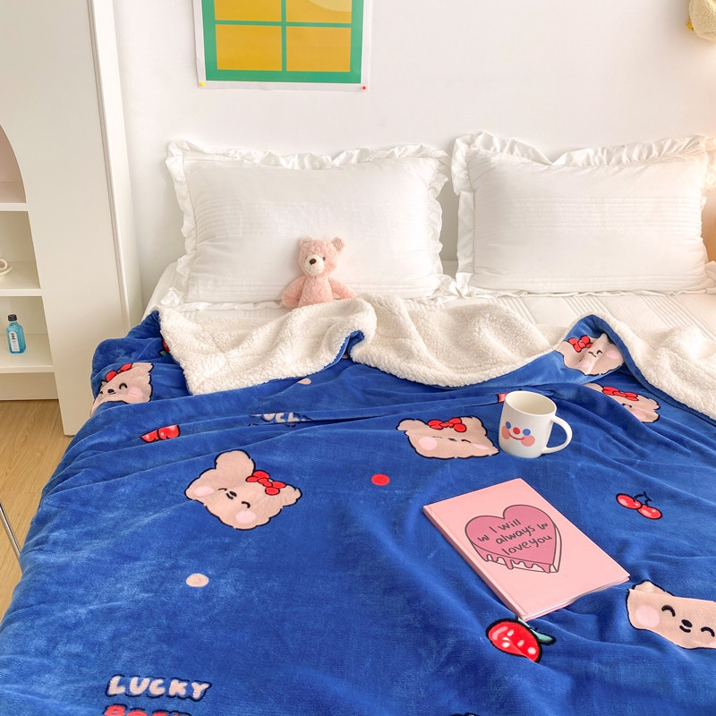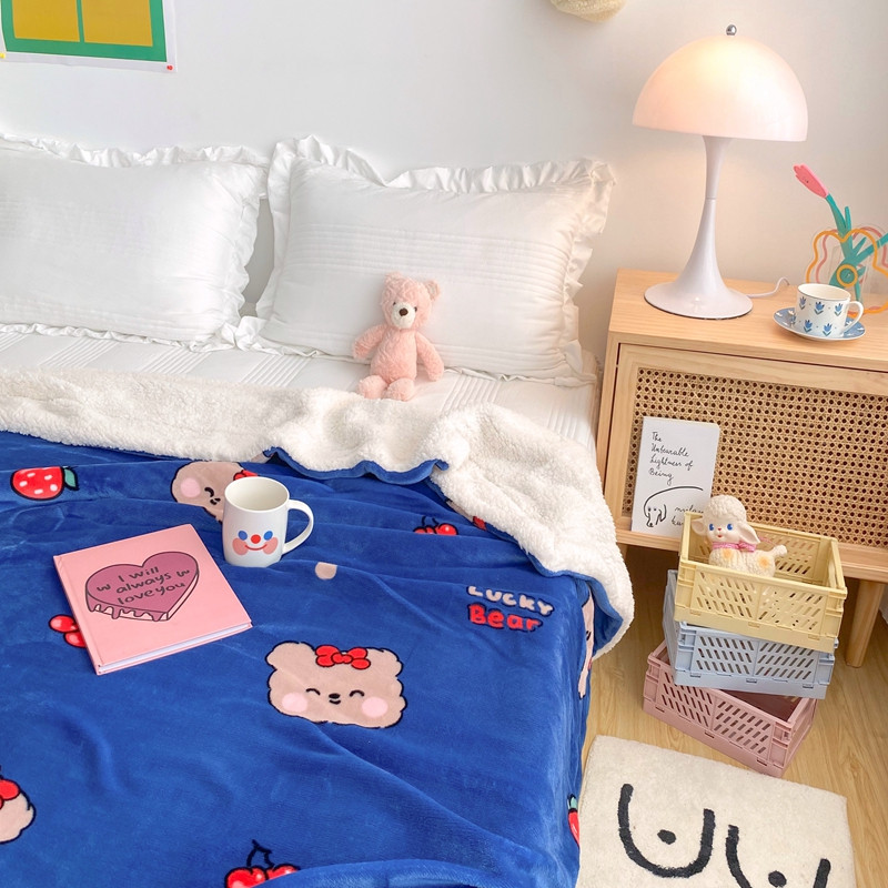 顾里2020新款ins网红少女心温暖牌羊羔绒毯 草莓小熊
