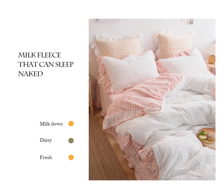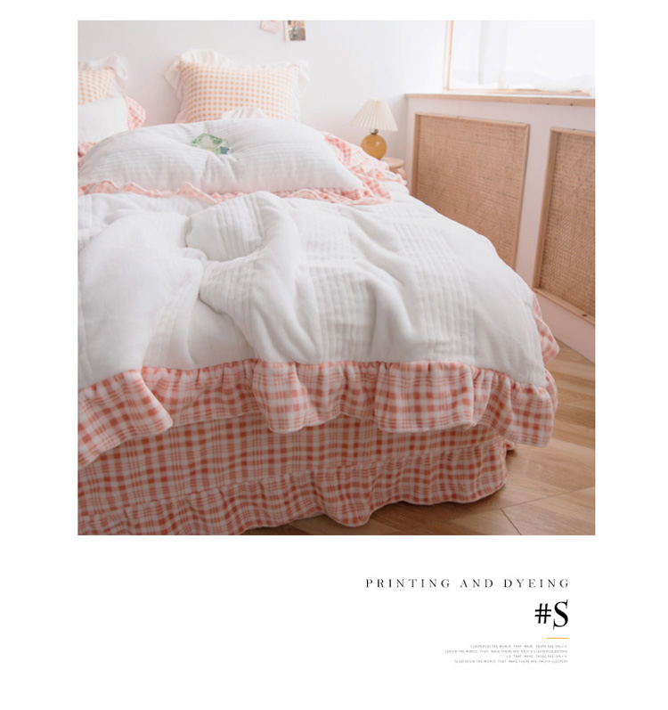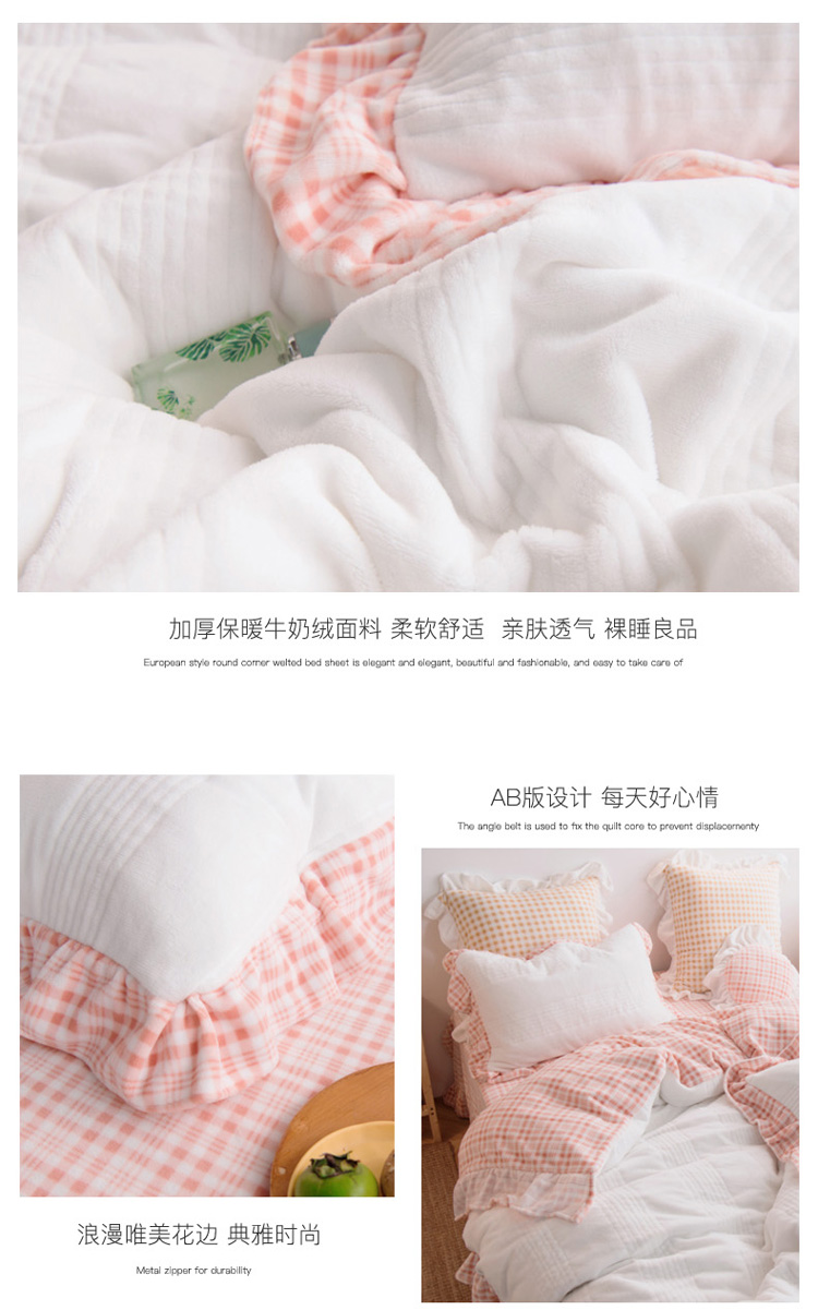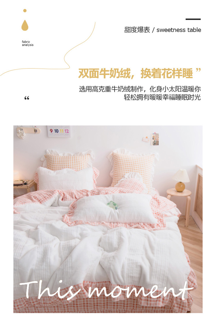 商品名称:漫调 2020新款奶油系软糯牛奶绒夹棉四件套 蜜橘优格