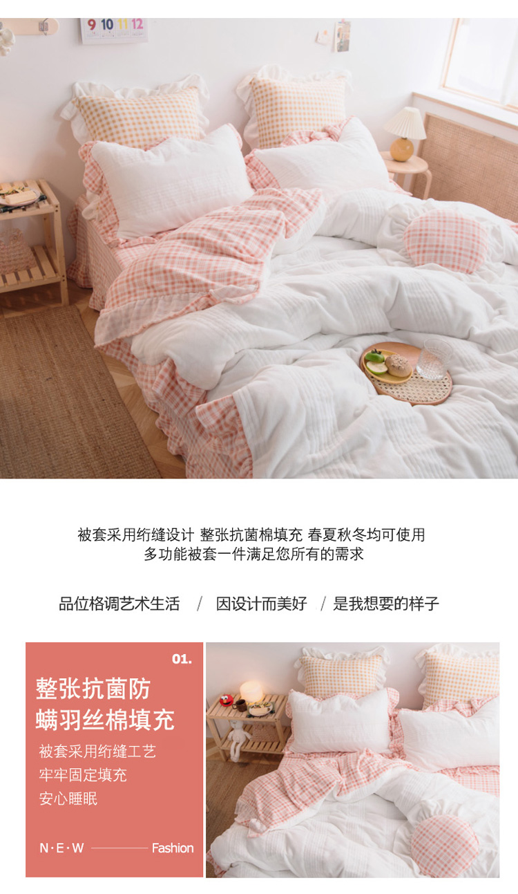 (总)漫调家纺 2025新款繁星绗缝夏被 复古风实拍,繁星白,繁星粉,繁星灰,繁星咖,繁星绿,繁星杏