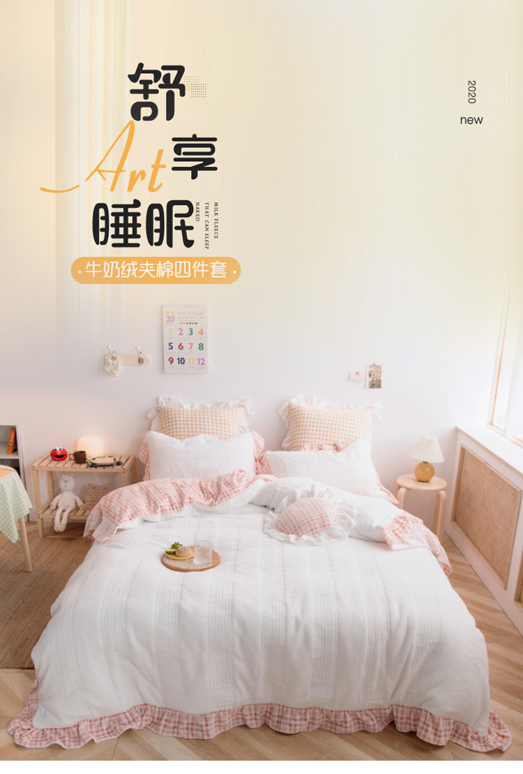 漫调 2020新款奶油系软糯牛奶绒夹棉四件套 蜜橘优格