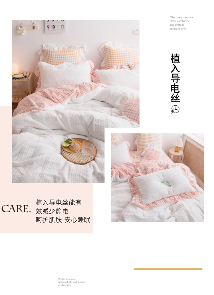 (总)漫调家纺 2025新款全棉双层纱与绒床盖三件套,黛紫缀花,粉雾枝蔓,玫瑰故事,青芜点绯,轻烟凝灰