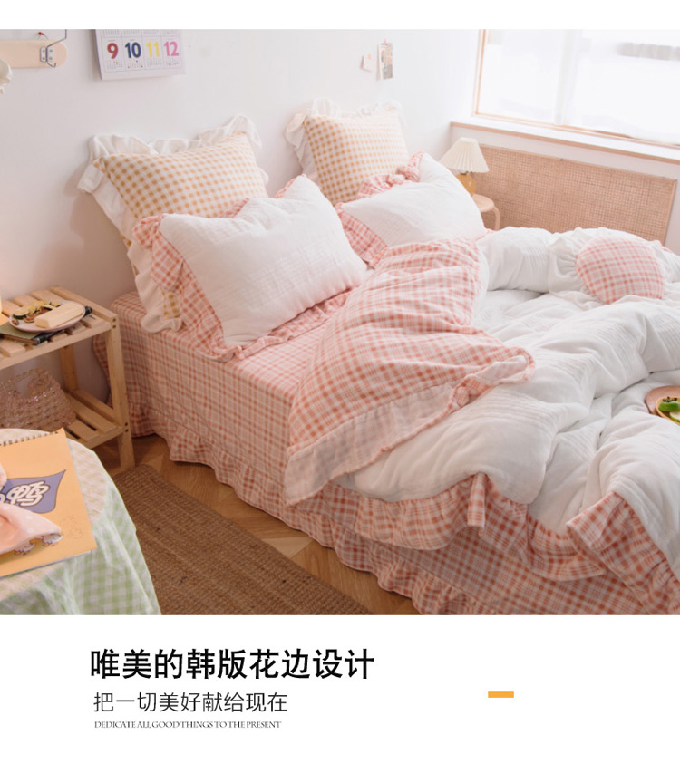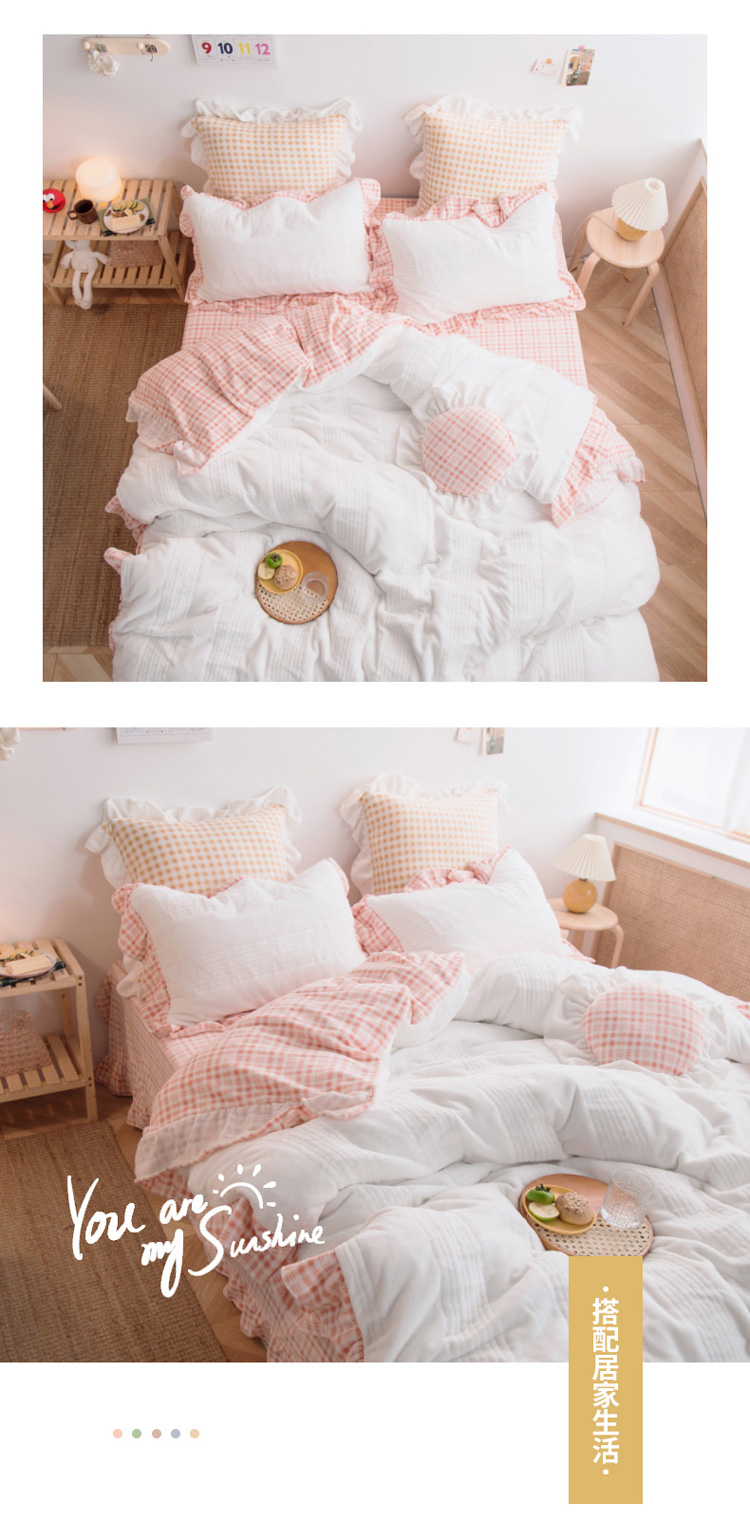 (总)漫调家纺 2025新款全棉ins风蝴蝶结韩系奶油花边床盖三件套,奶油白,奶油粉,奶油杏