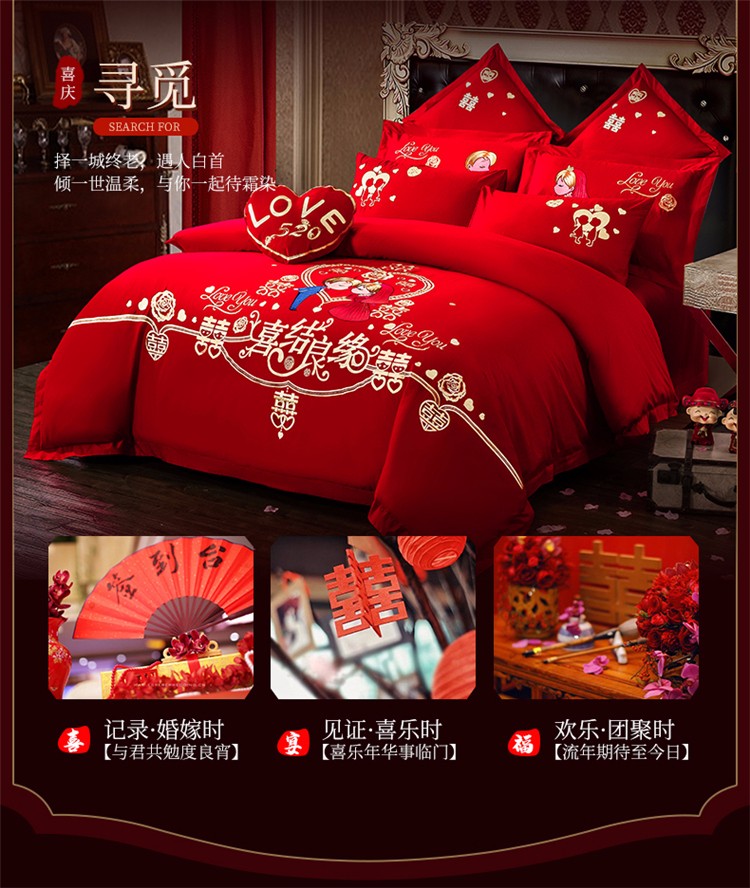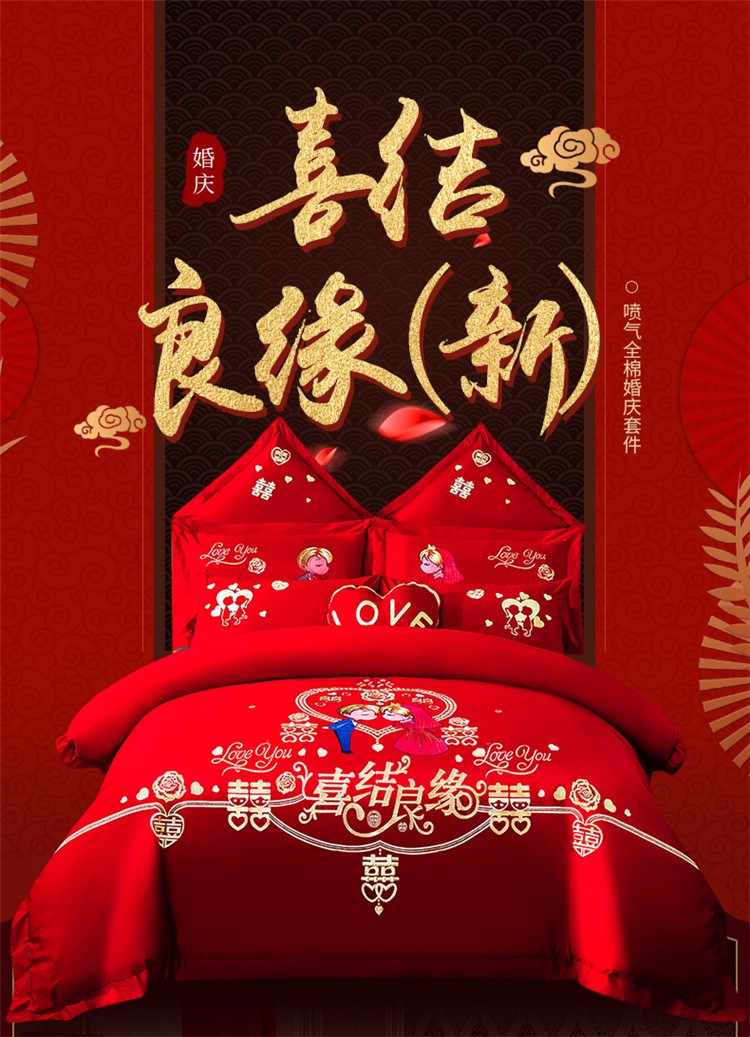 当前位置: 91家纺网 > 商品网购 > 床品套件 > 四件套 > 全棉活性四件套 > 千禧 2020新款喷气全棉婚庆四件套 喜结良缘(新)