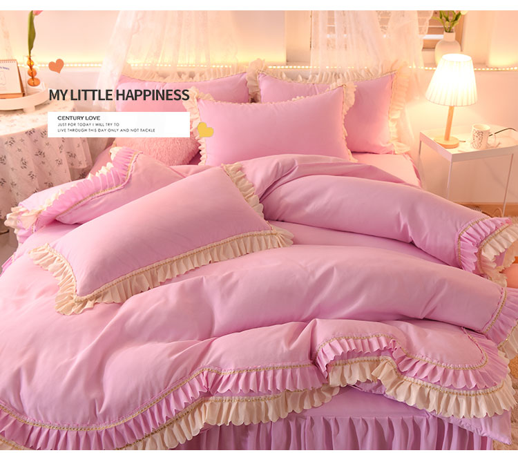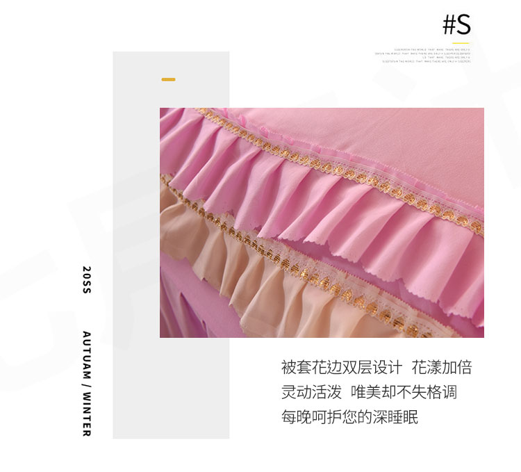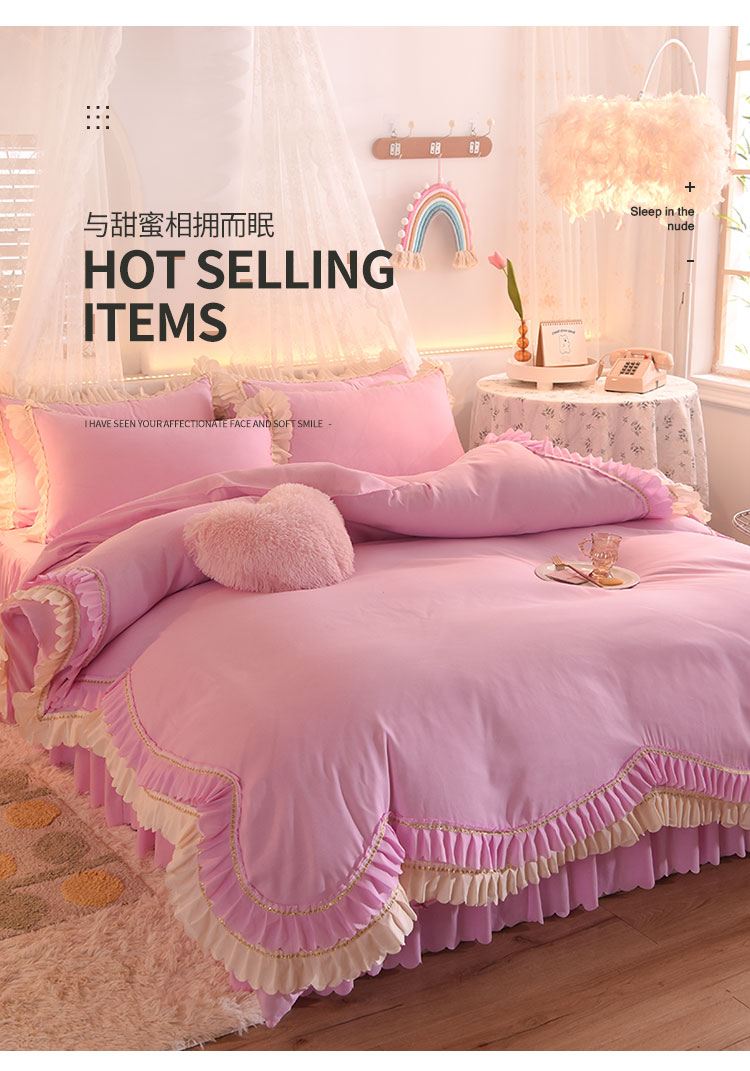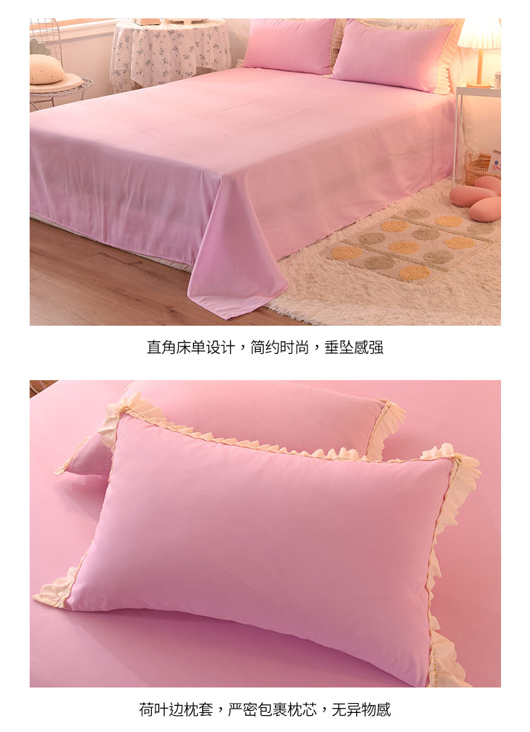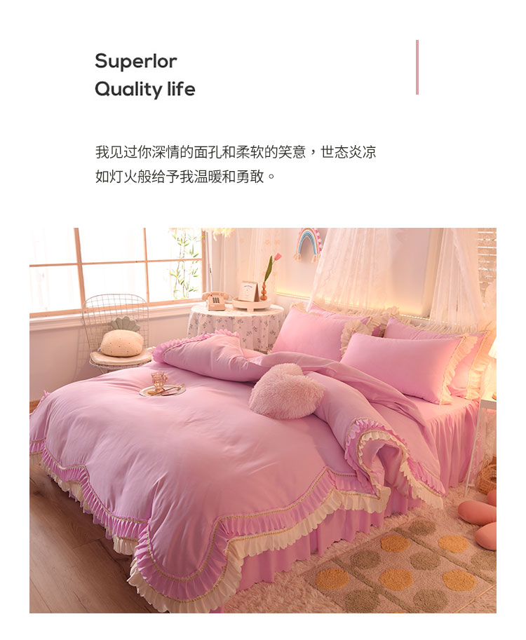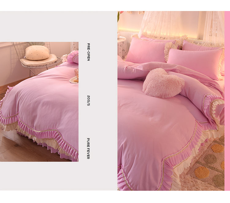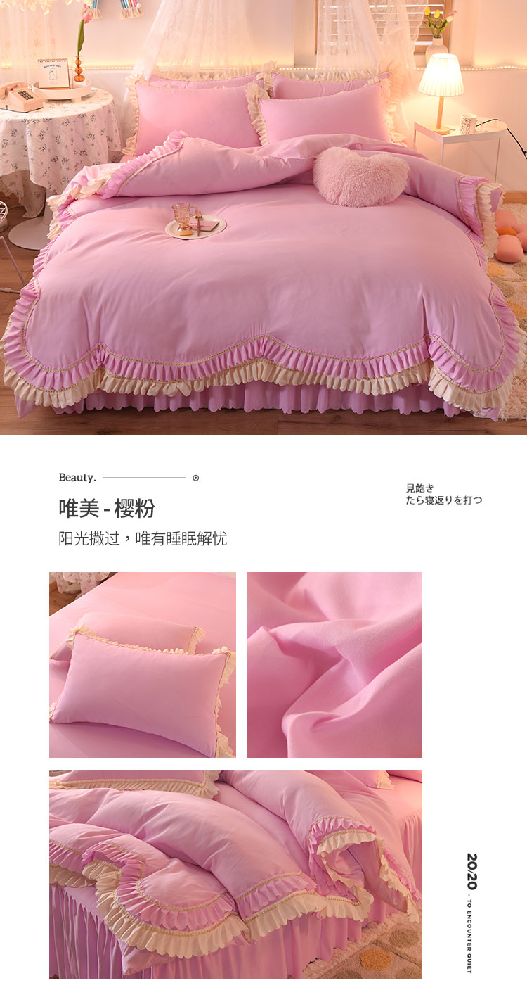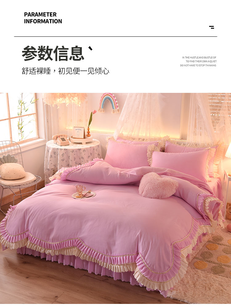 商品名称:芭比蔓 2024新款韩版磨毛花边四件套 唯美-樱粉