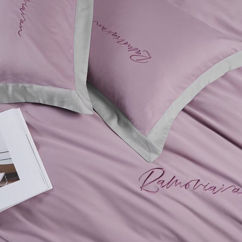 玖玖爱 2021新款100支天丝棉logo刺绣四件套 紫色