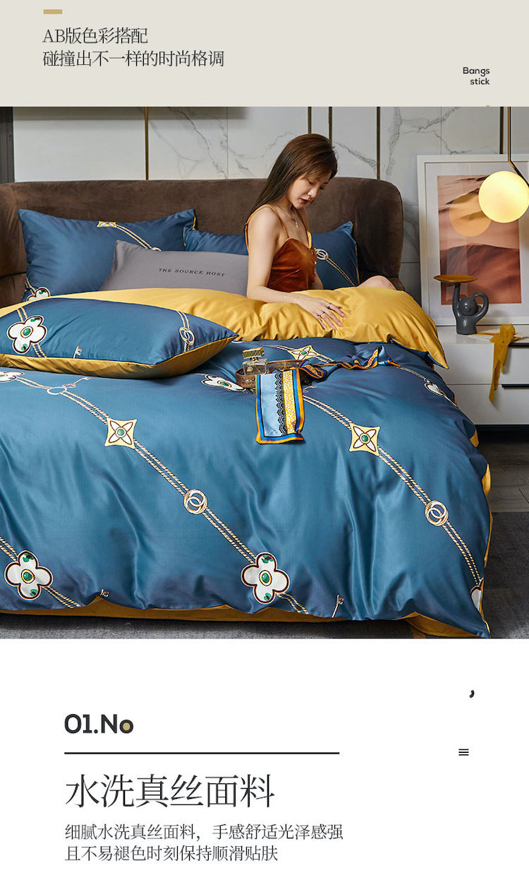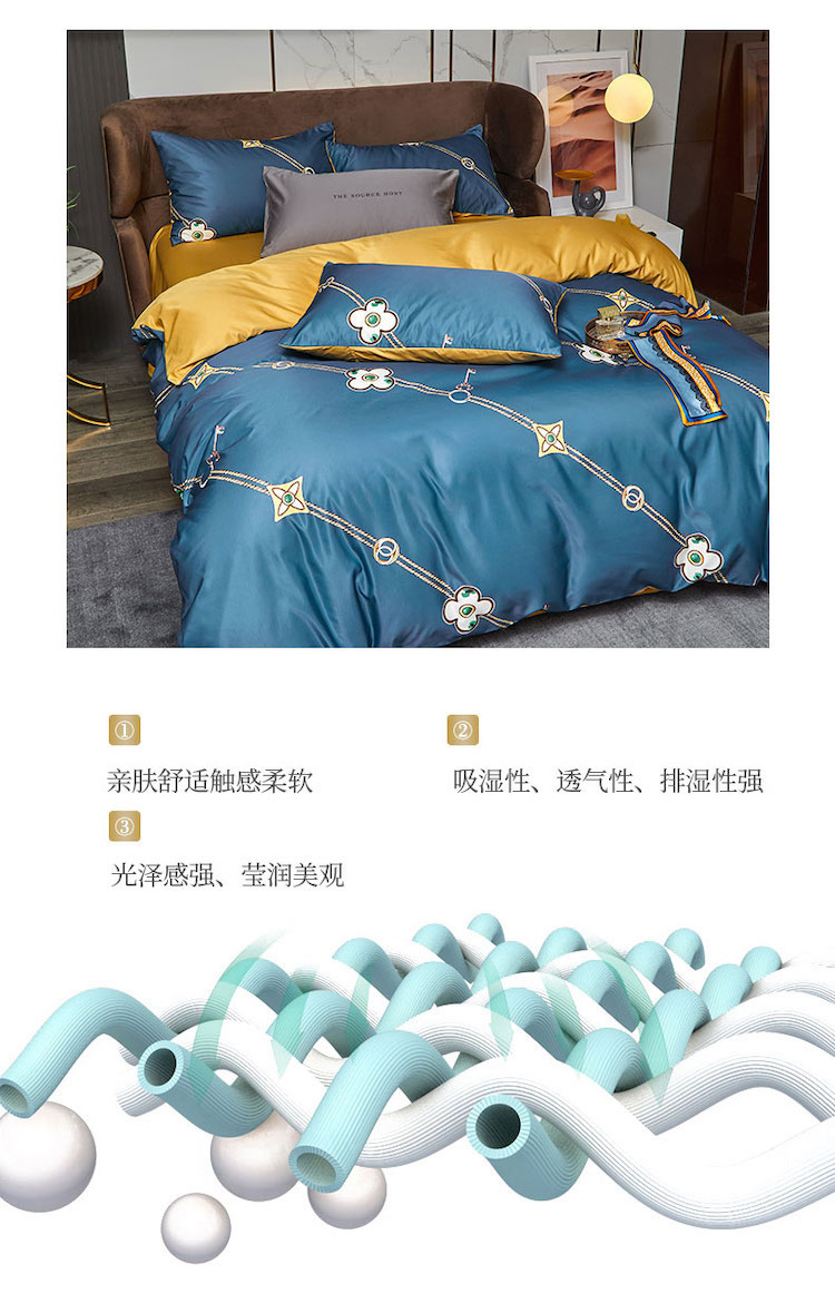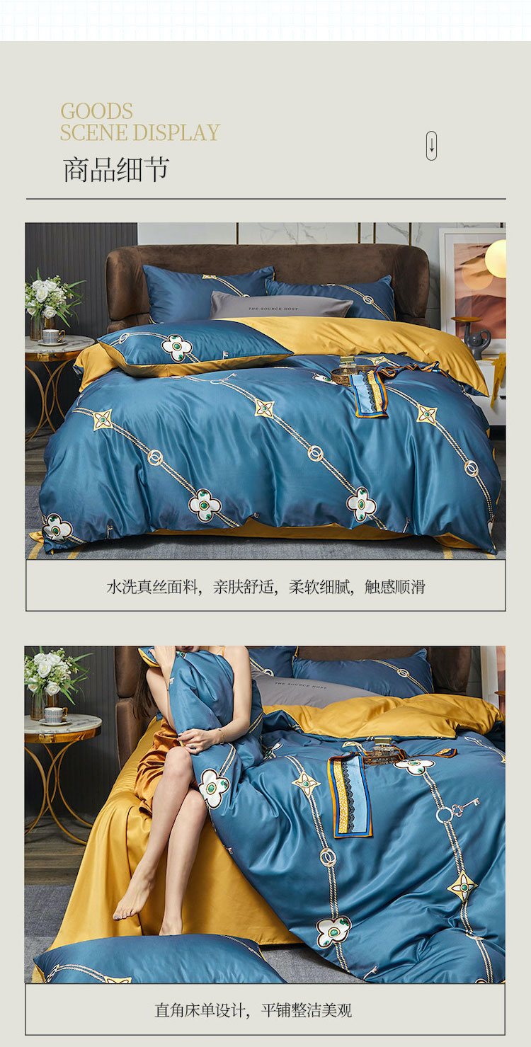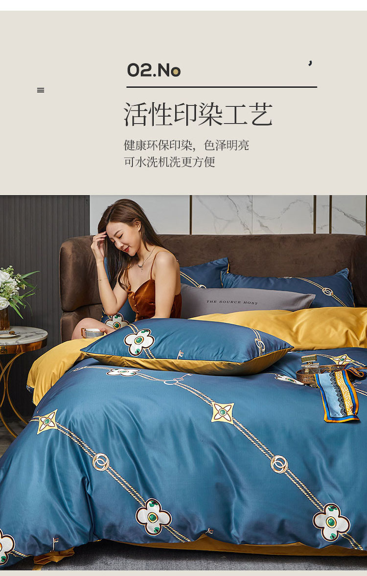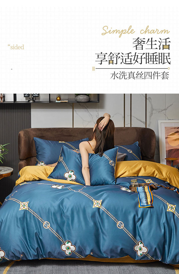 凡客 2021春夏新款60支水洗真丝数码印花四件套轻奢风系列 露易凡克