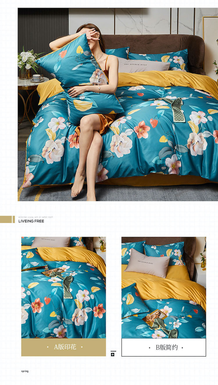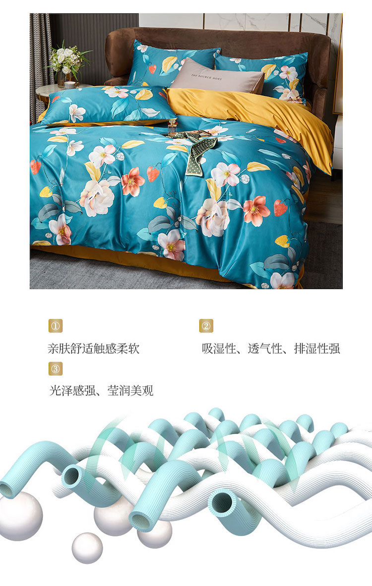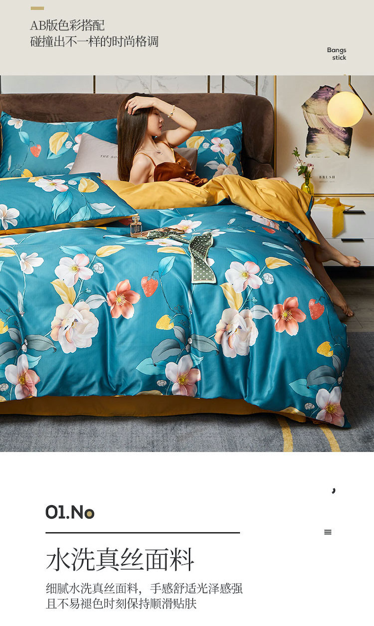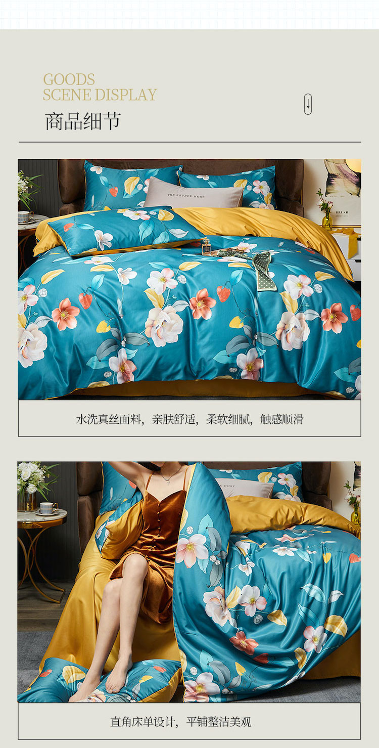 商品名称:凡客 2021春夏新款60支水洗真丝数码印花四件套轻奢风系列 廊桥遗梦