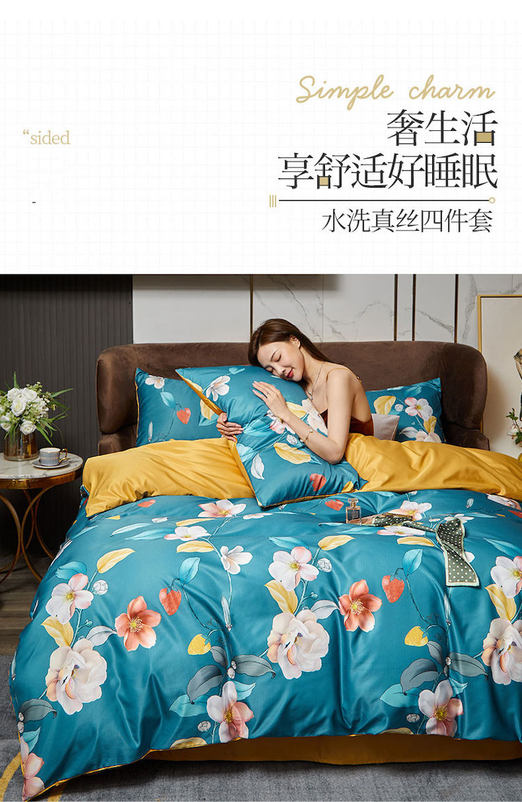 凡客 2021春夏新款60支水洗真丝数码印花四件套轻奢风系列 廊桥遗梦