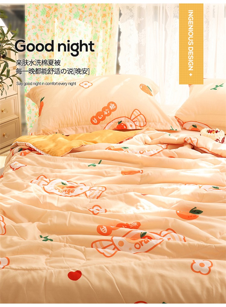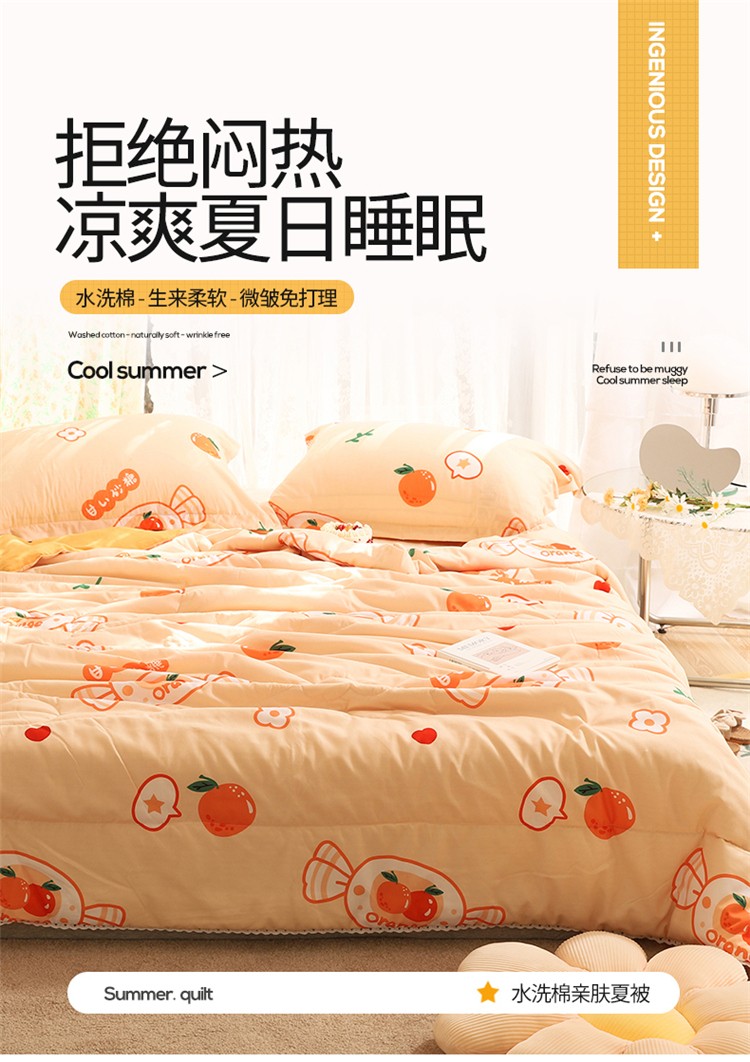 商品名称:慕尚 2025新款水洗棉夏被实拍图 橘子奶糖