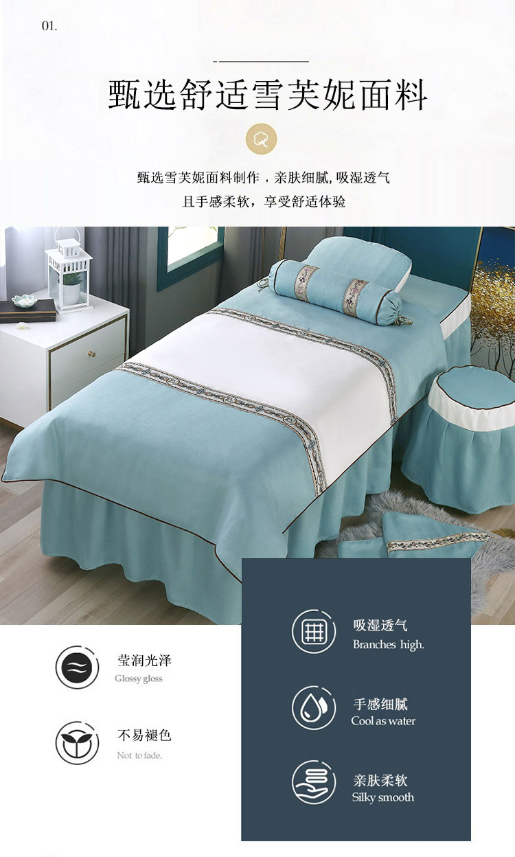 不打烊家纺 2025新款雪芙妮美容床罩-古韵佳人 湖蓝