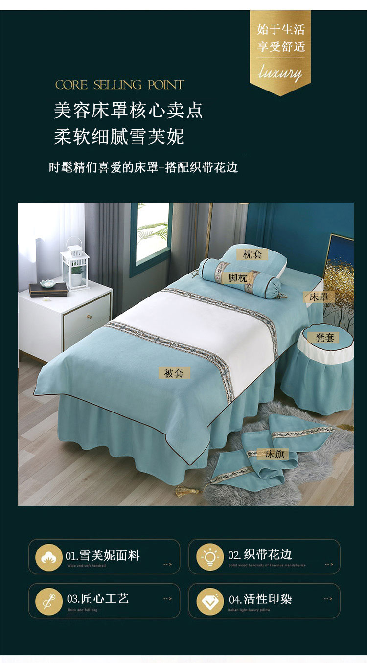 • 91家纺网 家纺一手货源 找家纺 不打烊家纺 2025新款雪芙妮美容床罩-古韵佳人 湖蓝