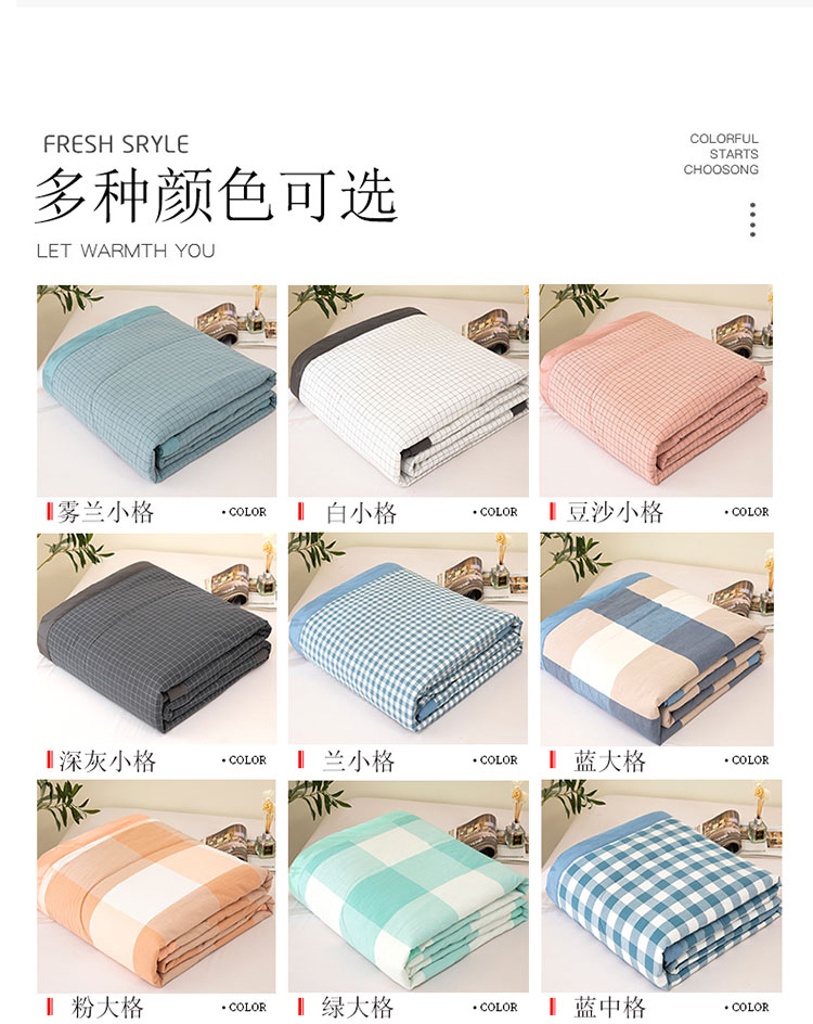 (总)天瑜家纺 2023新款全棉色织水洗棉夏被,白小格,豆沙小格,粉彩格,粉大格,粉宽条,粉小格,蓝大格,蓝咖中格,蓝宽条,蓝小格,蓝中格,绿彩格,绿大格,绿小格,深灰细条,深灰小格,雾兰小格