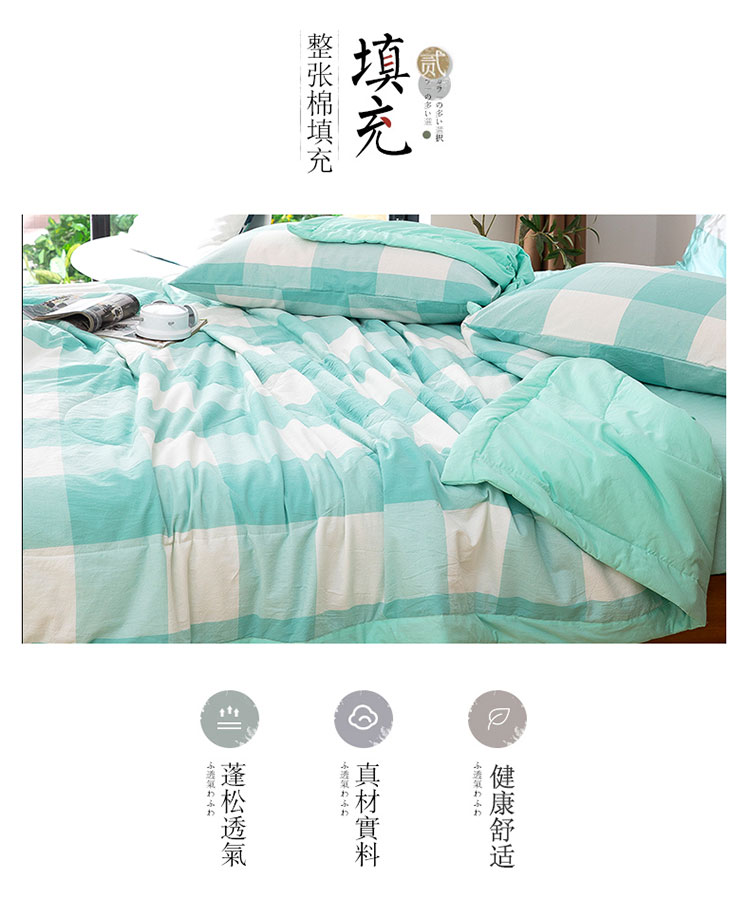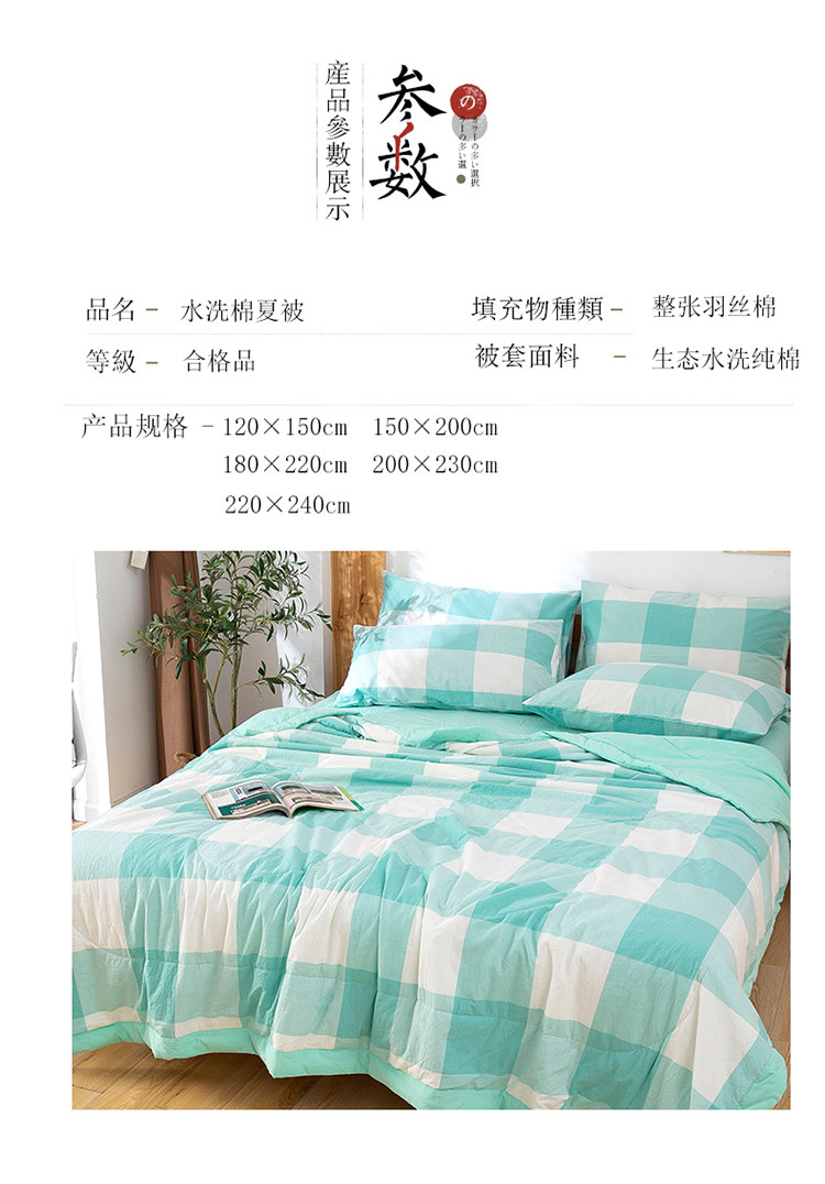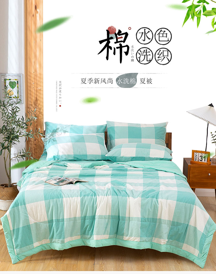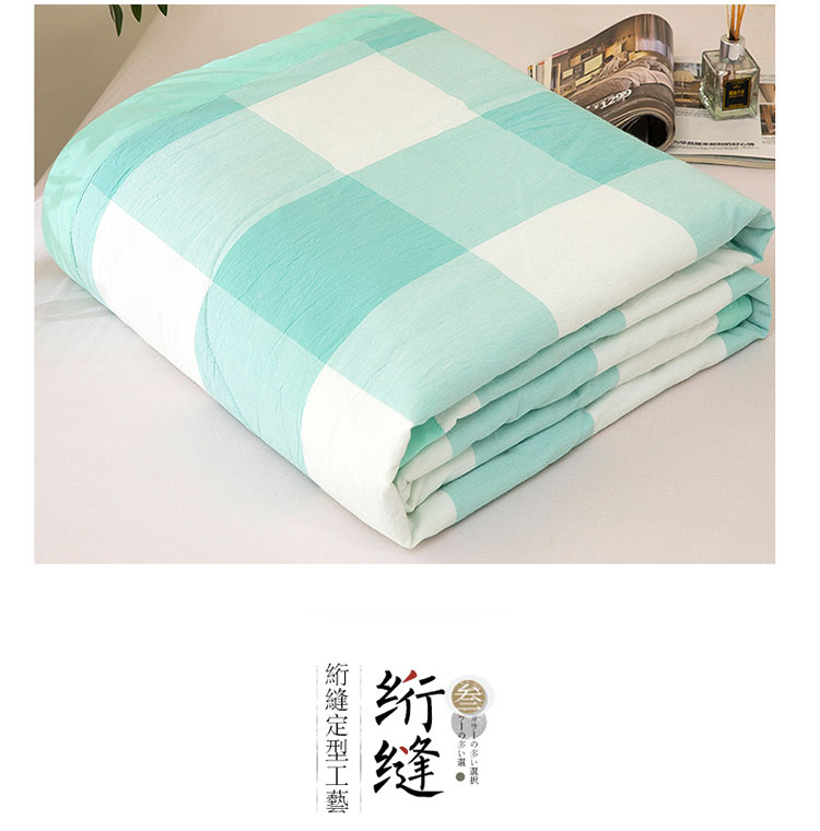 天瑜家纺 2023新款全棉色织水洗棉夏被 绿大格