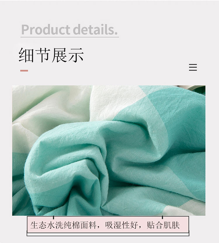 商品名称:天瑜家纺 2023新款全棉色织水洗棉夏被 绿大格
