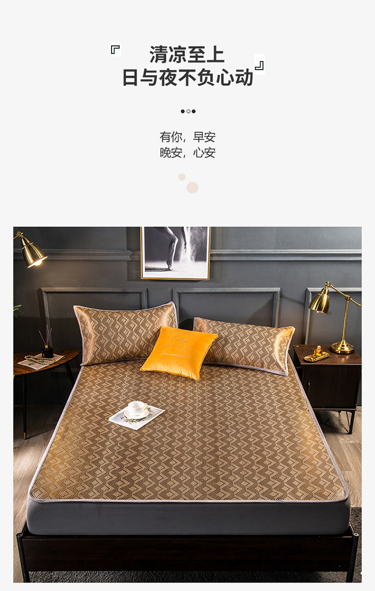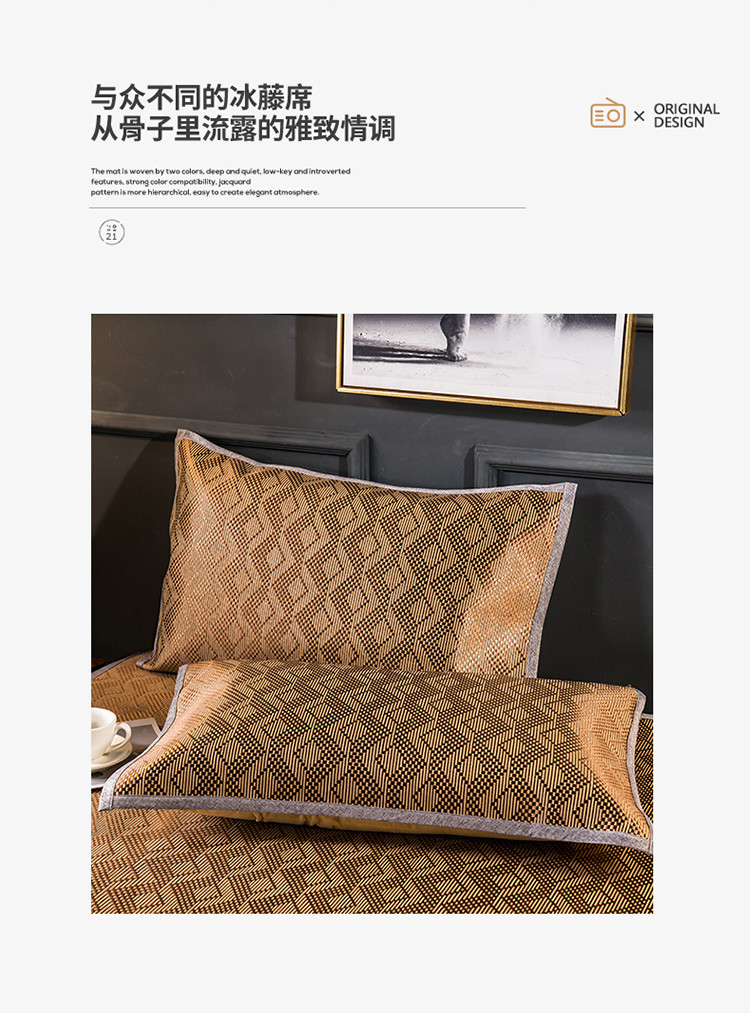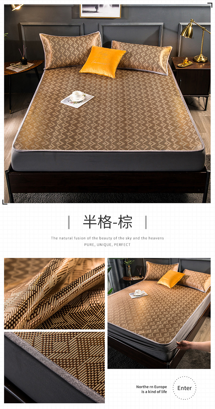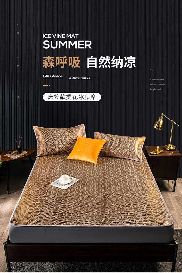 商品名称:恒爱2021新品床笠款提花冰藤席 半格-棕