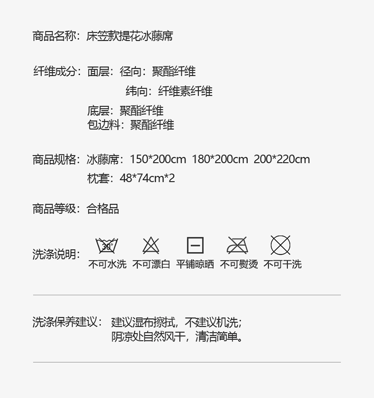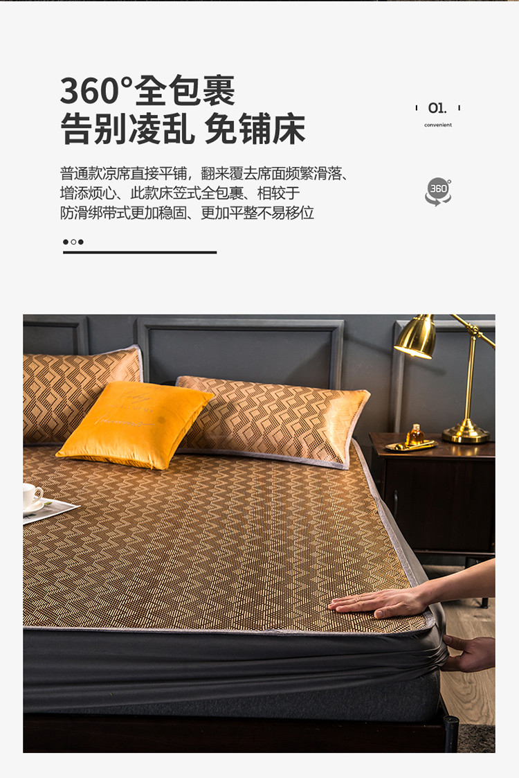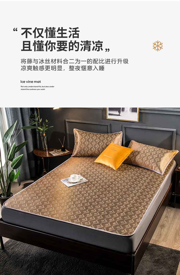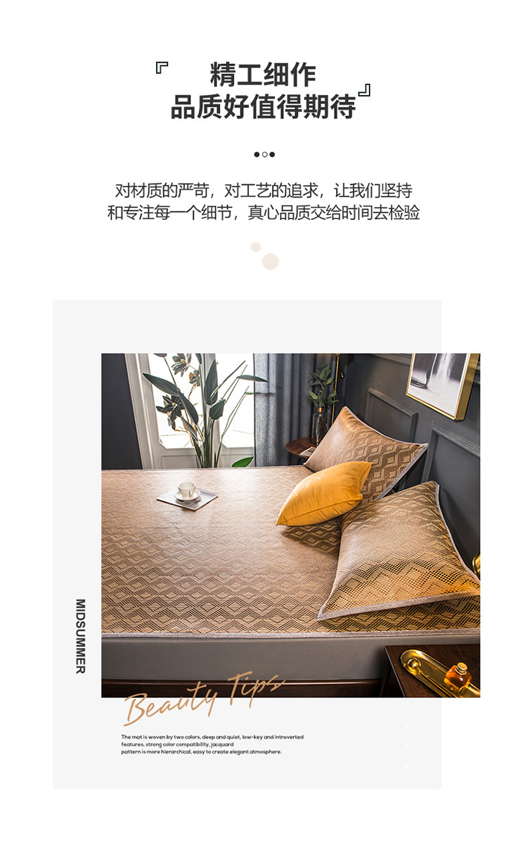 商品名称:恒爱2021新品床笠款提花冰藤席 半格-棕