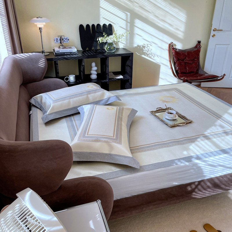 时年2021新款水洗冰露丝养生凉席数码印花轻奢风格二小幸运黄2