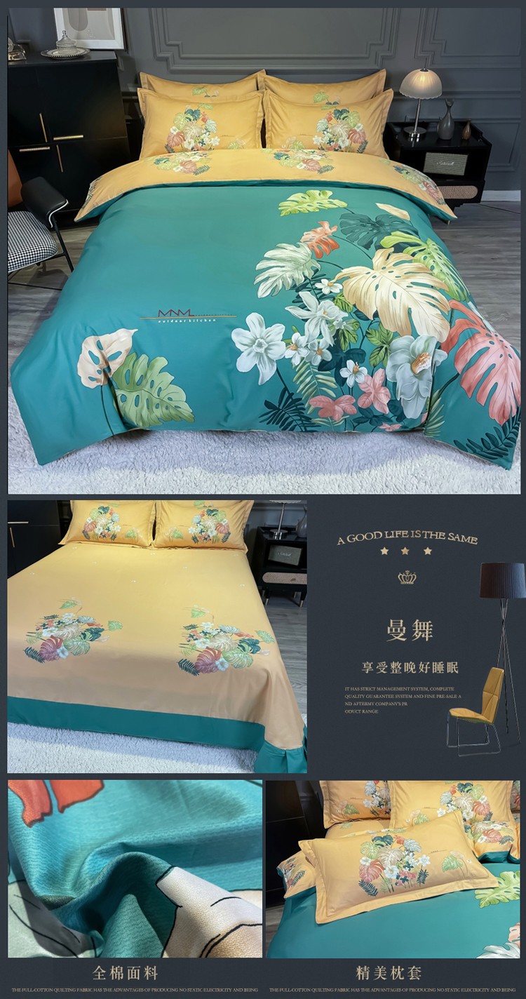 当前位置: 91家纺网 > 商品网购 > 床品套件 > 四件套 > 全棉活性四件套 > 金爱家 2021新款全棉活性花卉系列四件套 曼舞