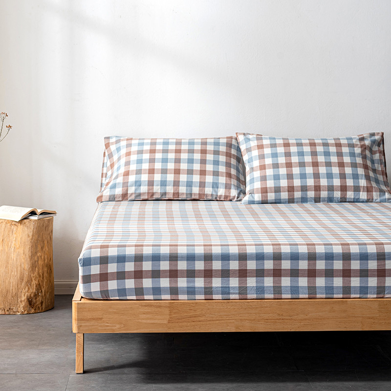 久典 2022新款色织全棉水洗棉单品床笠 中格兰