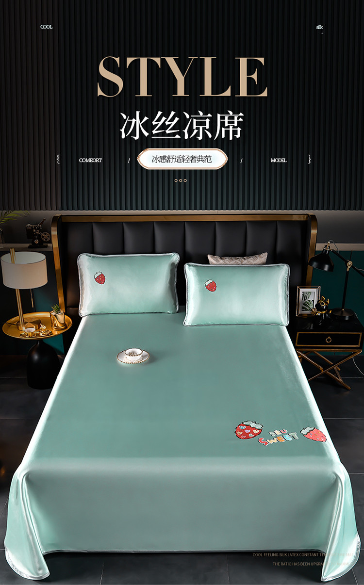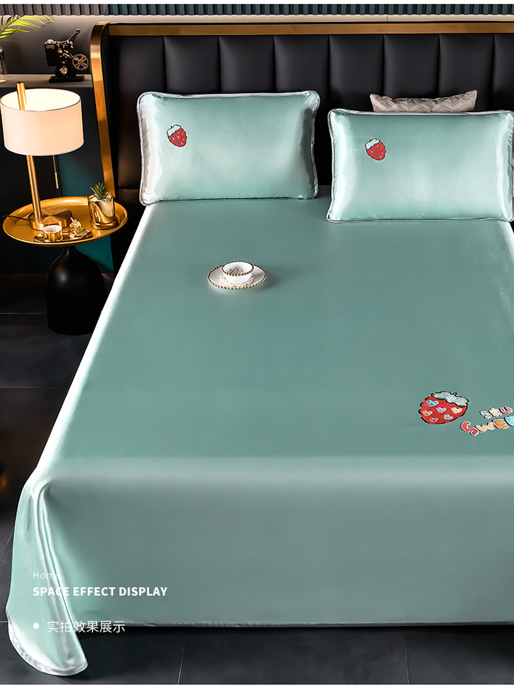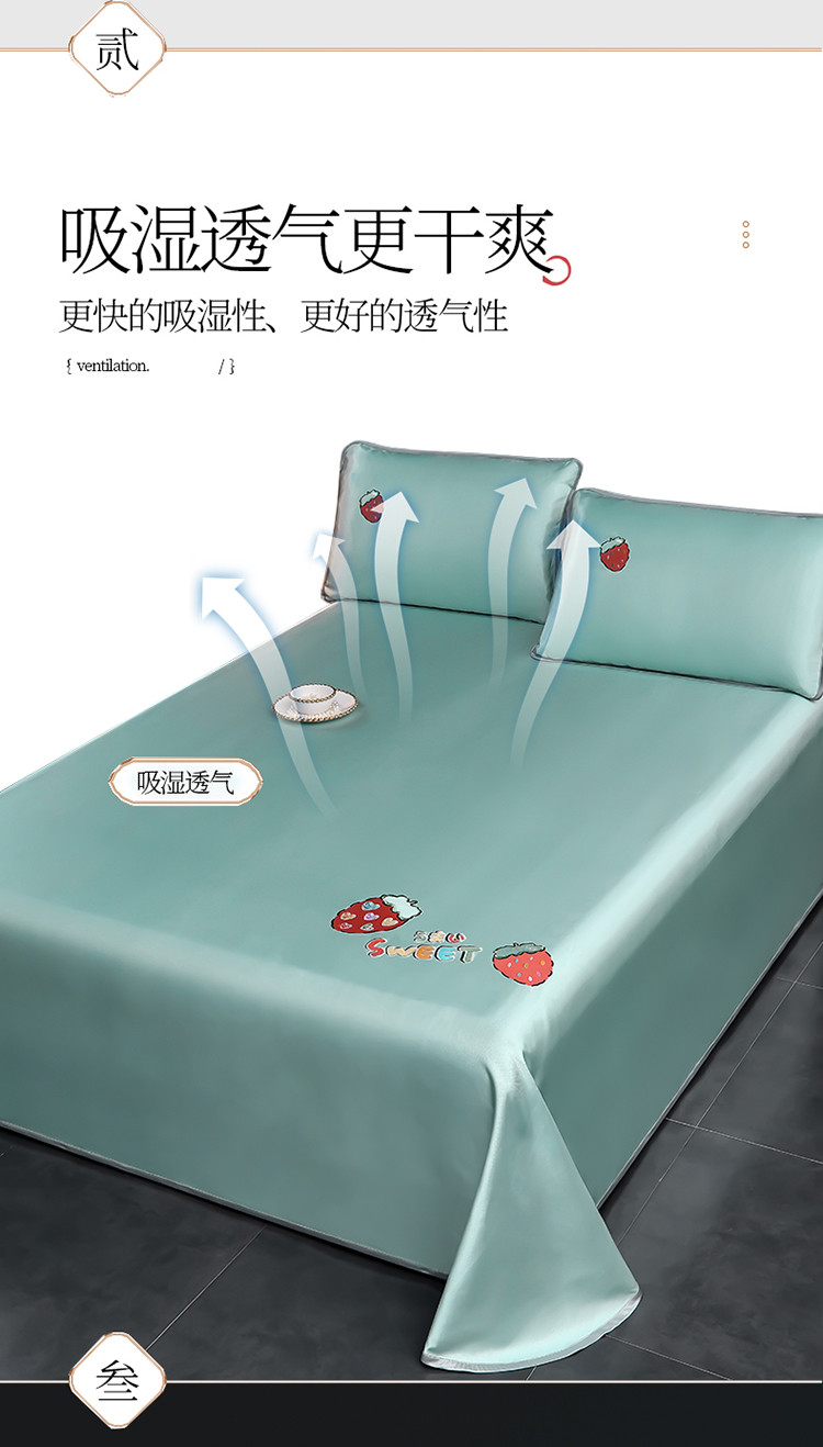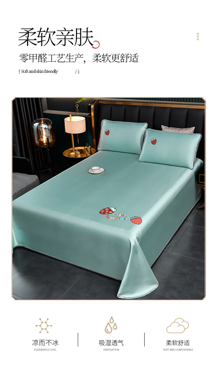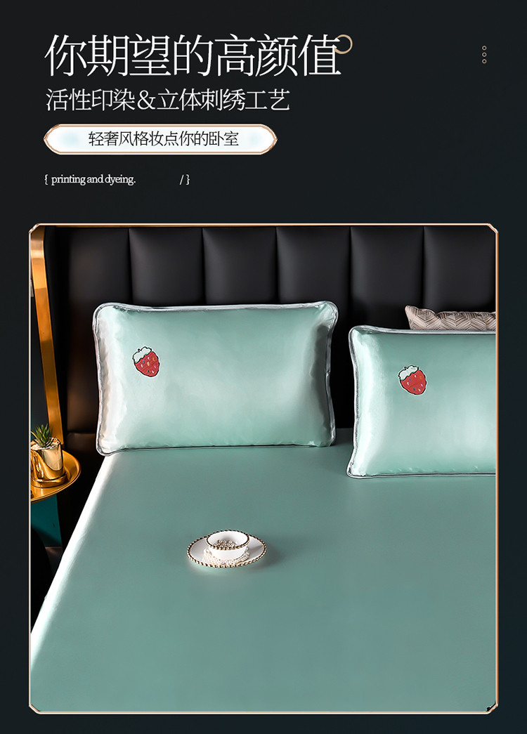 芃成家纺 2021新款冰丝凉席刺绣床单款 草莓果绿