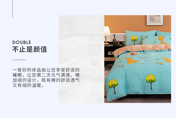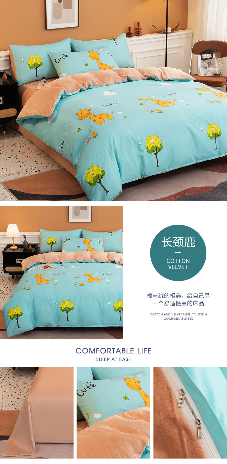 当前位置: 91家纺网 > 商品网购 > 床品套件 > 四件套 > 全棉普通四件套 > 芃成家纺 2021新款棉加绒四件套 长颈鹿