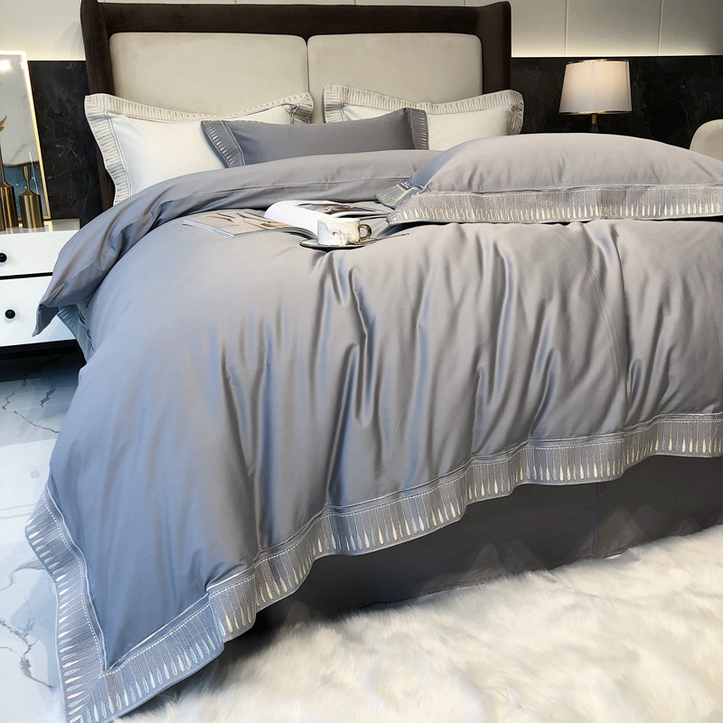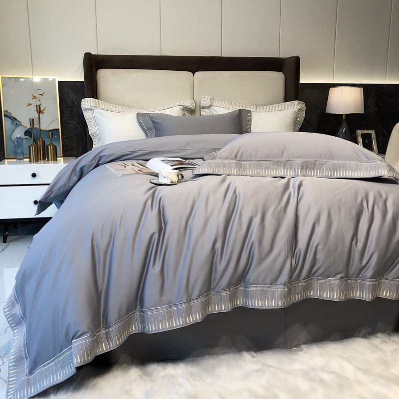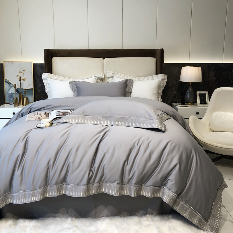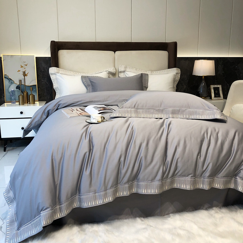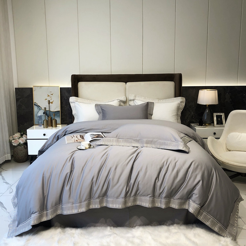 商品名称:太古汇家居 2021新款澳棉高定彩条绣花羽四件套 玄灰