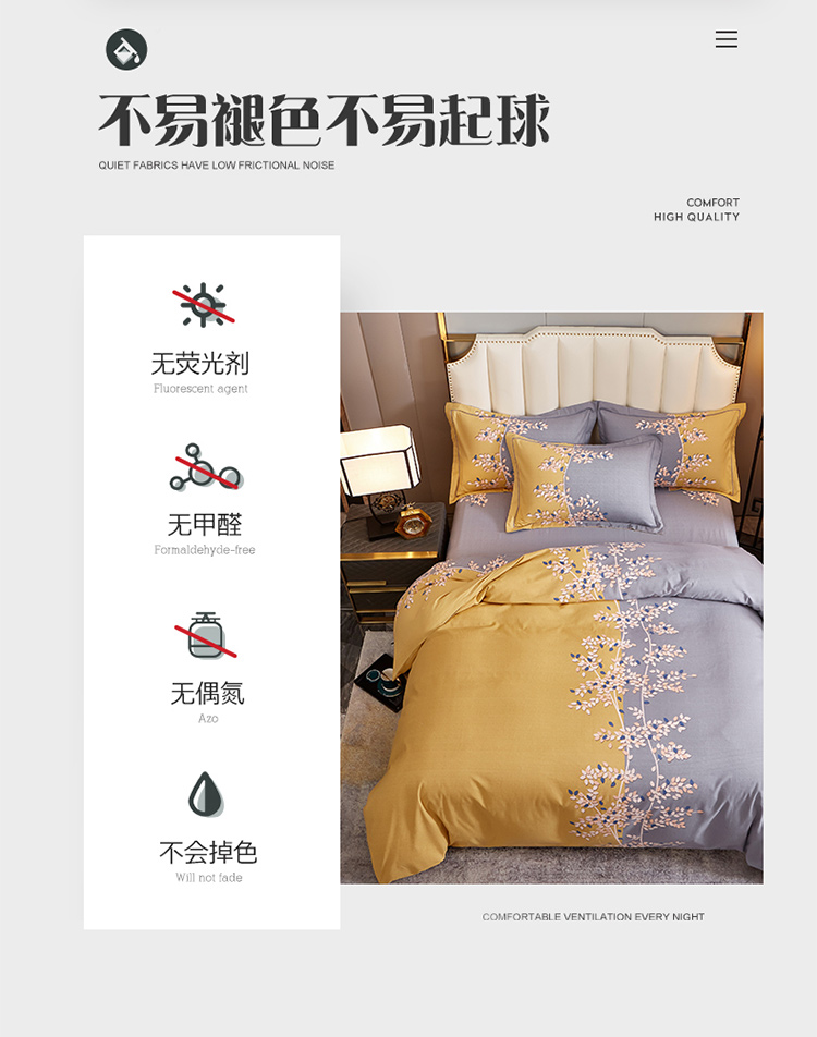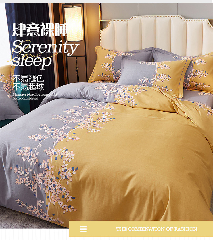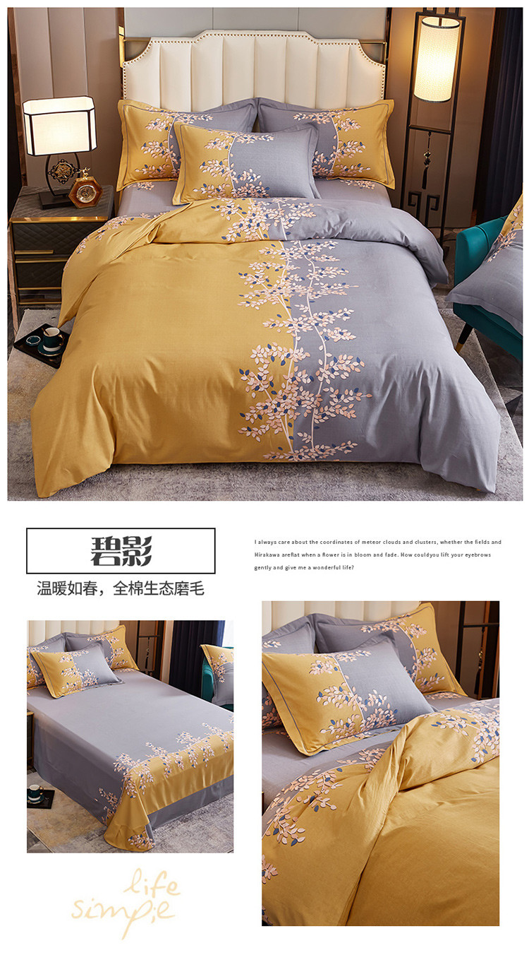 (总)雲归梦 2021新款全棉生态磨毛刺绣四件套,慕思-橙色,慕思-粉紫,慕思-灰,慕思-米黄,慕思-青绿,慕思-天蓝