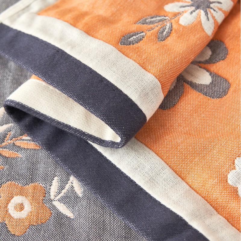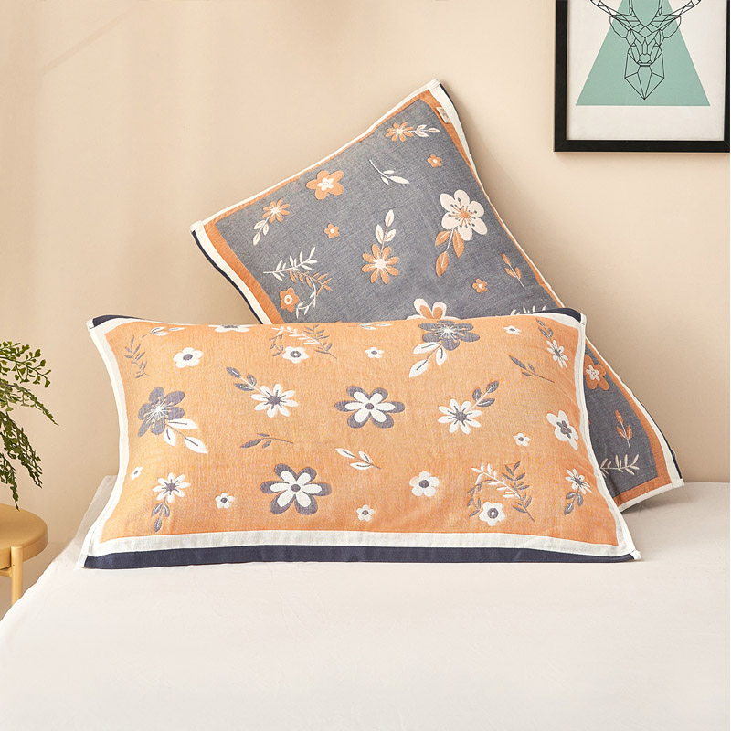 • 91家纺网 家纺一手货源 找家纺 朴尔家纺新款全棉四层纱布休闲枕巾53*78cm纷飞花雨-黄